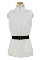 ベスト 中綿ベスト ロングベスト チュニック丈 撥水 保温 防寒 ベルト付きデザイン ワンポイント刺繍 ゴルフウェア