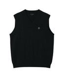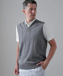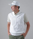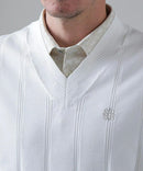 ベスト Vネック ニットベスト 天竺×ミニケーブル編み 軽量 エコ素材 手洗い可 シルバーロゴ刺繍付 ゴルフウェア