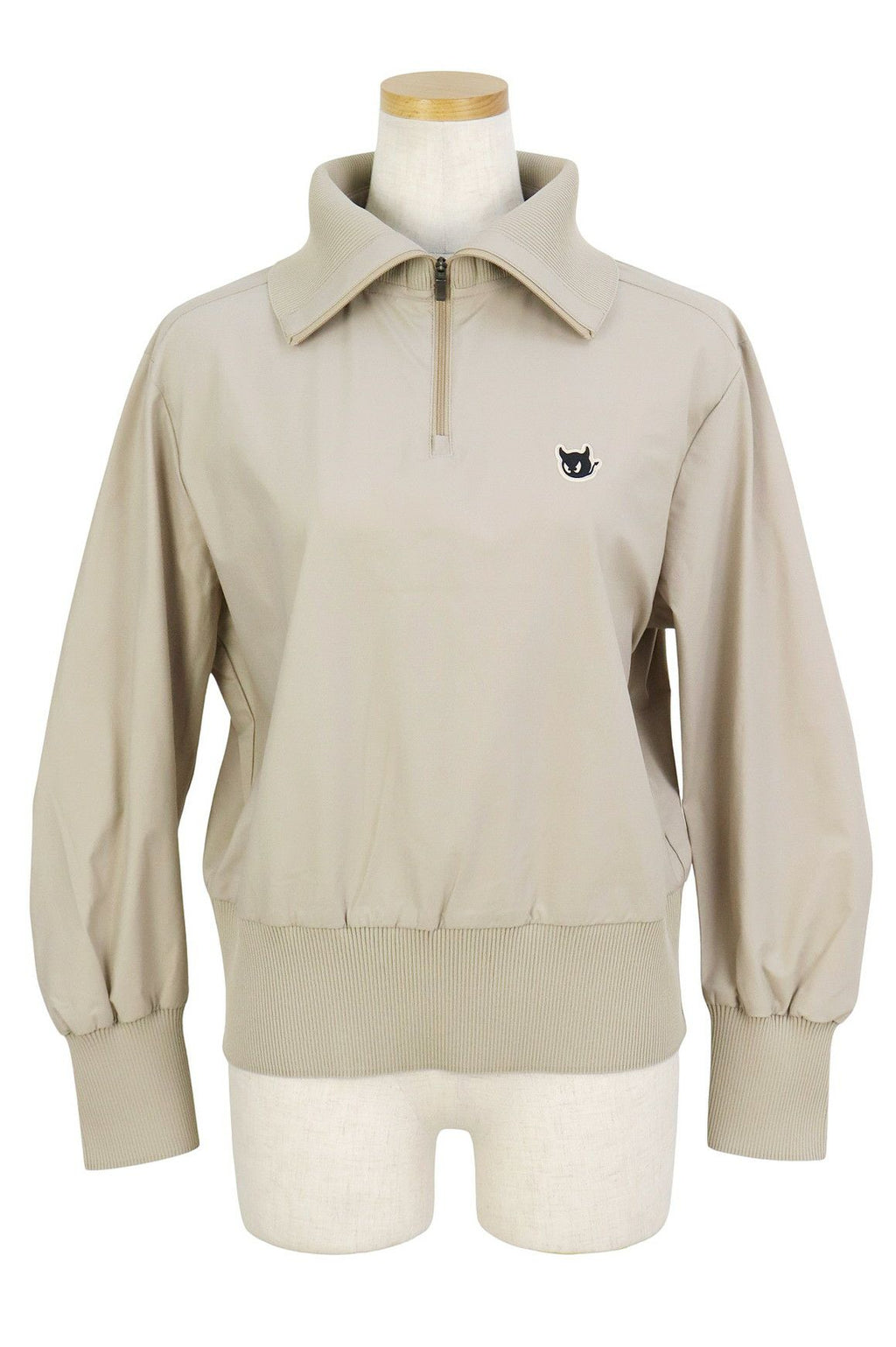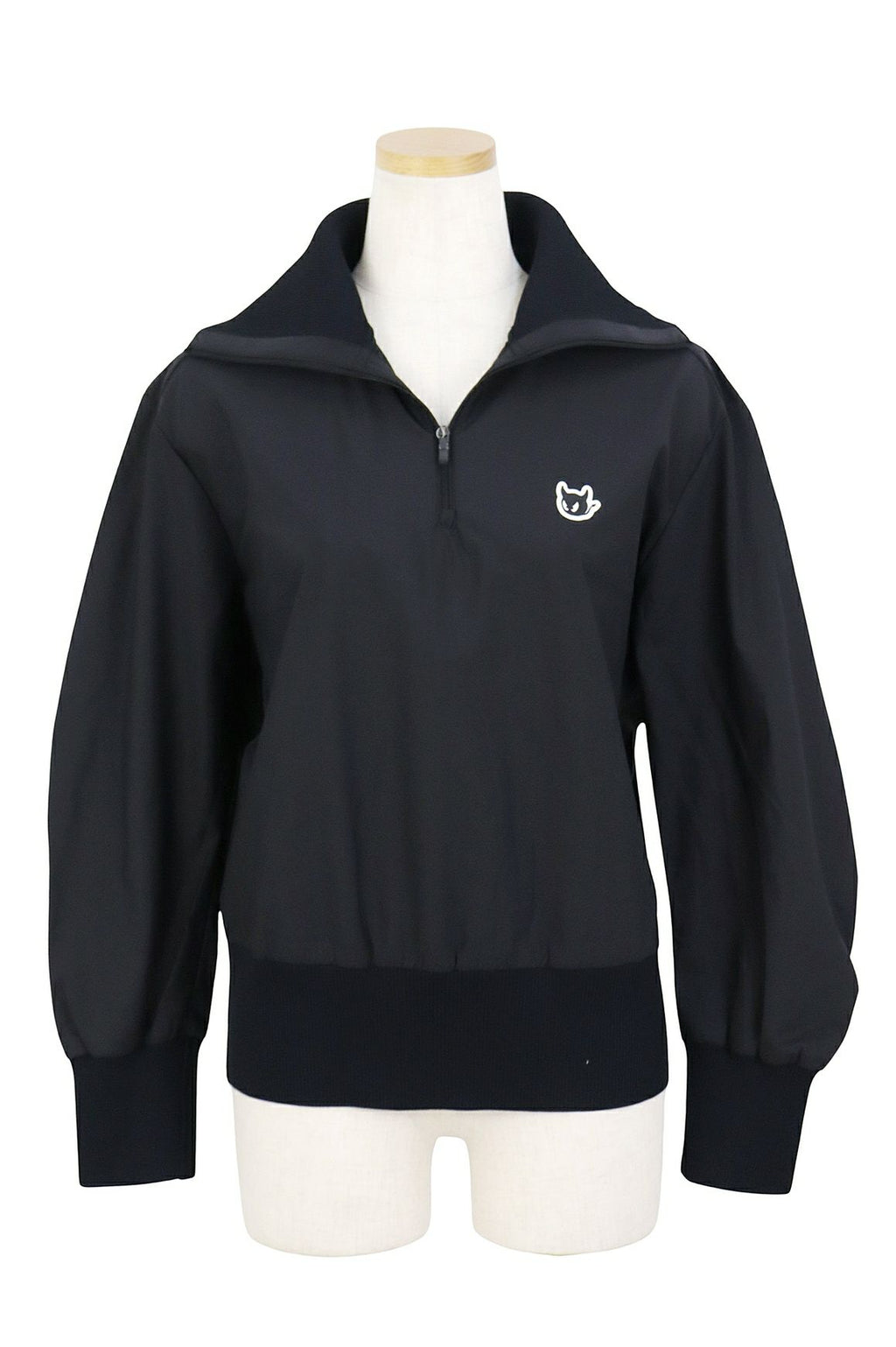ブルゾン長袖 ハーフジップ UVカット 撥水 タフタ調トリコット素材 シャーリングデザイン リブ衿 ワッキーロゴワッペン ゴルフウェア