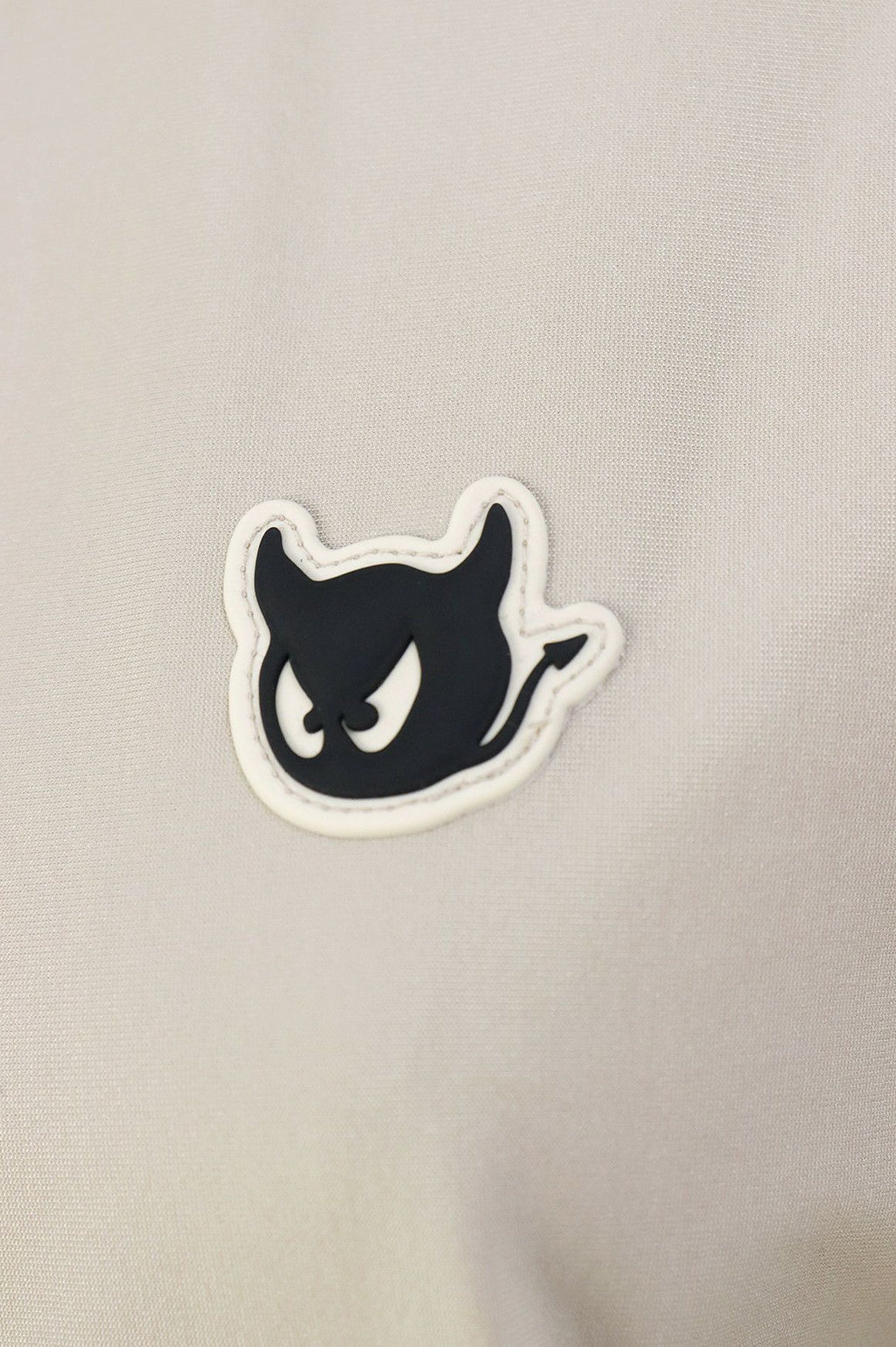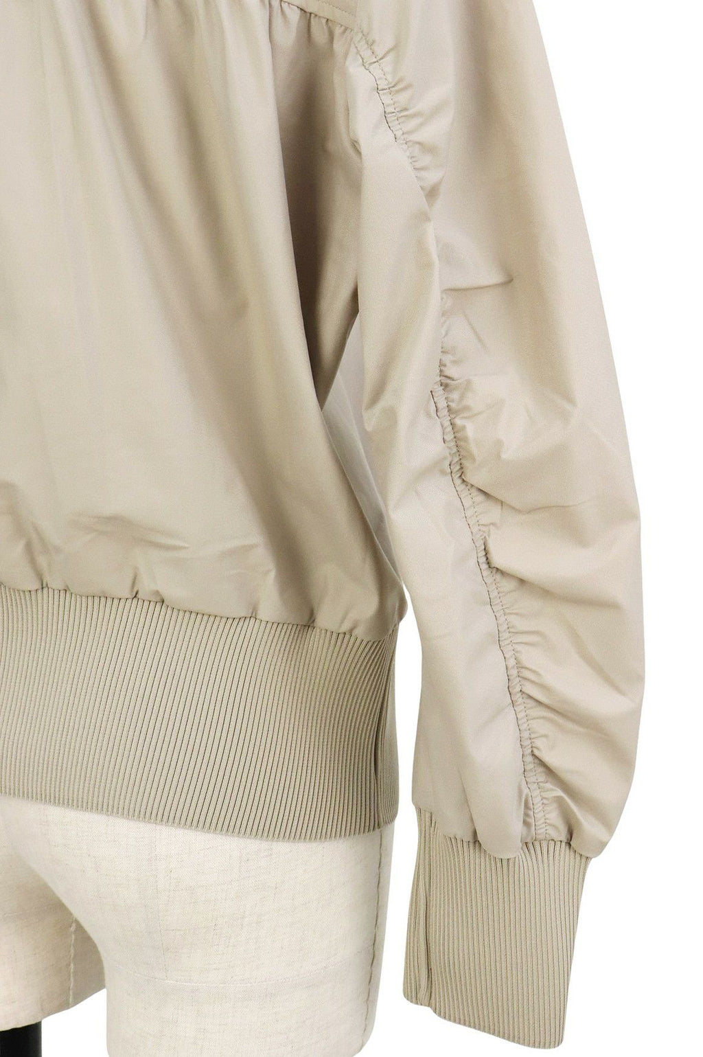 ブルゾン長袖 ハーフジップ UVカット 撥水 タフタ調トリコット素材 シャーリングデザイン リブ衿 ワッキーロゴワッペン