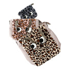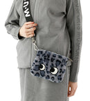 前面のボア素材に施されたアーモの目のアップリケ刺繍とMUの金属パーツの鼻がチャーミングで特徴的。