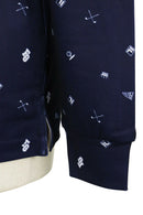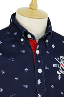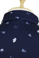 ポロシャツ 長袖 ボタンダウンシャツ UVカット 吸水速乾 ゴルフモチーフ 飛び柄 エンブレムロゴ刺繍 M~3L ゴルフウェア