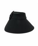 サンバイザー ツバ広クルクルバイザー UVカット 丸めて収納可 バックリボン付き ロゴ刺繍