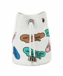 様々なメッセージの吹き出しロゴを刺繍で全面に表現しました。