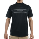 ハイネックシャツ 半袖モックネックシャツ UVカット ストレッチ ラインロゴプリント 袖フラッグ刺繍 ゴルフウェア
