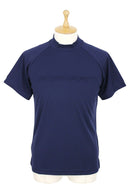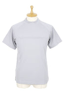 ハイネックシャツ 半袖 モックネックシャツ メッシュ調素材 ストレッチ 吸水速乾 UVカット エンボスロゴデザイン ゴルフウェア