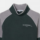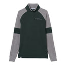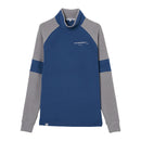 ハイネックシャツ 長袖 微起毛素材 吸湿発熱 ストレッチ 保温 ラグランスリーブ 配色デザイン ロゴプリント モックネック ゴルフウェア