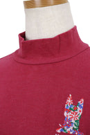 ハイネックシャツ 長袖 モックネックシャツ 保温 ストレッチ 微起毛素材 アーモ 犬 フラワー刺繍 インナーシャツにもなる ゴルフウェア