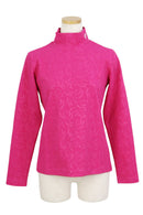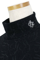 ハイネックシャツ 長袖 モックネックシャツ UVカット フラワー柄 花柄 ロゴ柄 エンボスデザイン ゴルフウェア
