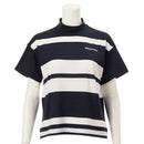 ハイネックシャツ 半袖 モックネックシャツ 吸汗速乾 ランダムボーダー柄 ゆったりシルエット ベア天竺素材 ゴルフウェア