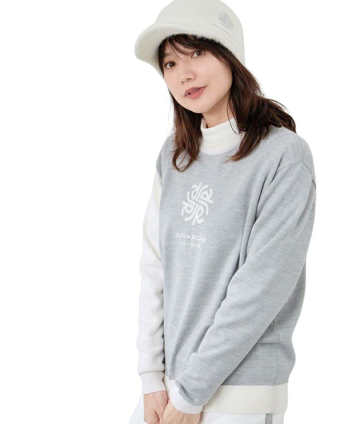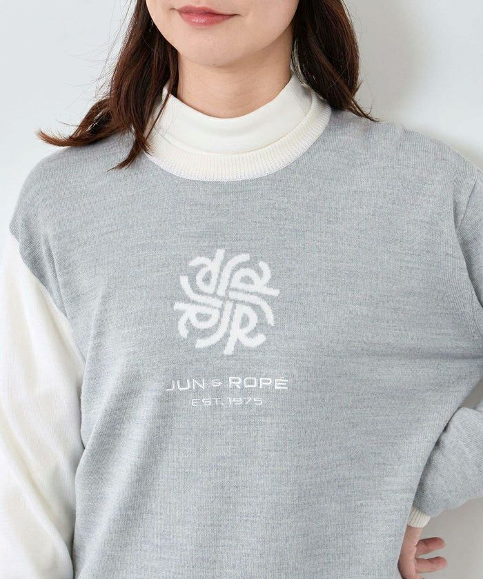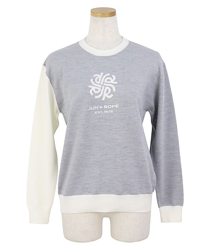 モノグラムモチーフ配色長袖クルーニット