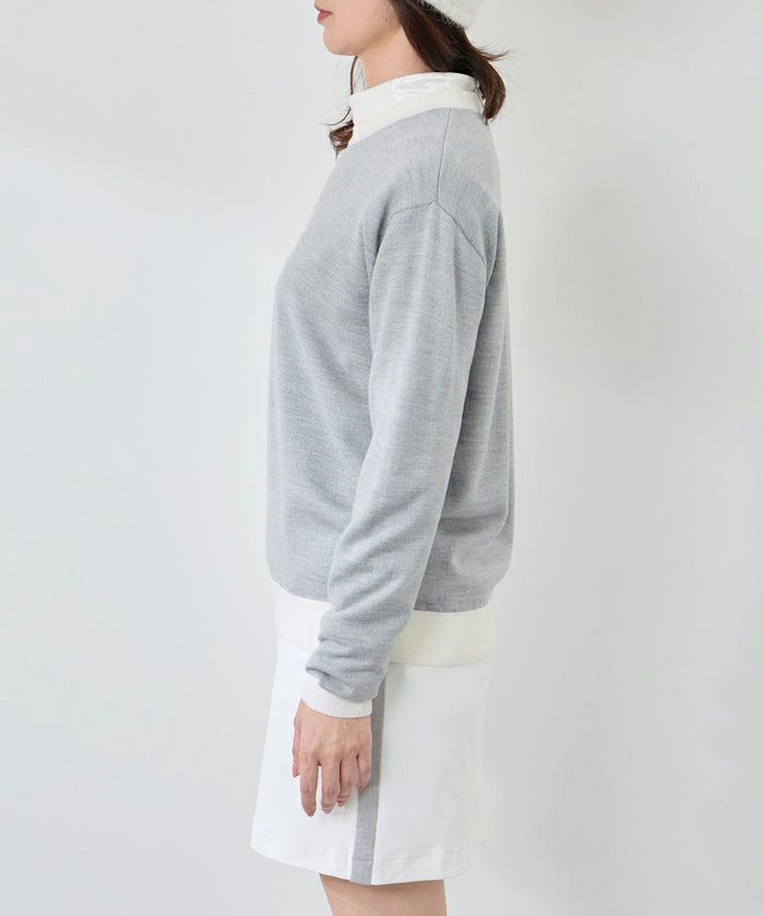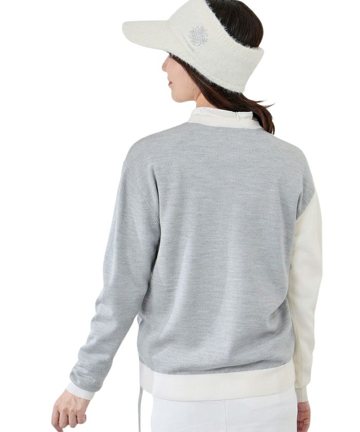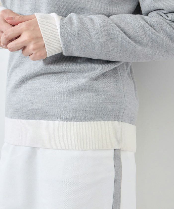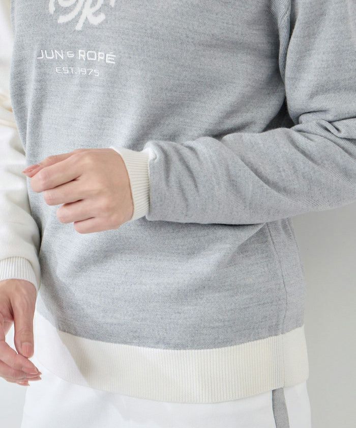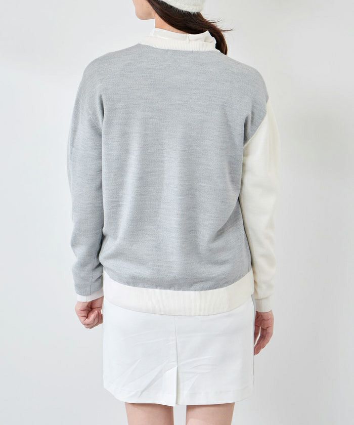 セーター ニット クルーネック 上質ウール100% モノグラムモチーフ 配色デザイン ゴルフウェア
