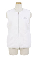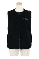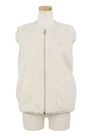 ベスト ノーカラー 丸首 フルジップベスト クラッシュボア素材 裏地付き ウォーム感 カレッジ風ロゴワッペン ゴルフウェア