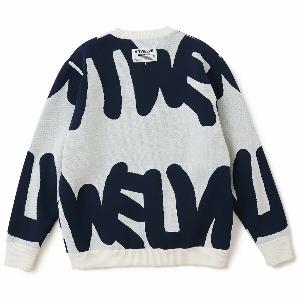 セーター ニット クルーネック 防風裏地付き 保温 グラフィックアートジャガード M~3Lまでご用意 GRFT KNIT