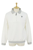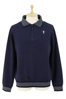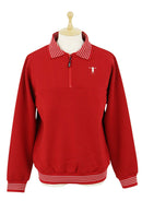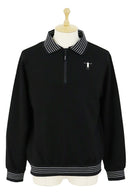 トレーナー ハーフジップ プルオーバー リブ衿付き ダンボールスウェット調 配色ライン ロゴ刺繍 ゴルフウェア