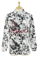 ハイネックシャツ 長袖 モックネックシャツ 裏微起毛 ストレッチ シブキ柄 ペイント柄 スプラッシュ柄 ロゴプリント ゴルフウェア