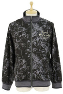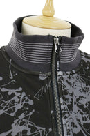 ブルゾン トラックジャケット 裏微起毛 ストレッチ シブキ柄 ペイント柄 スプラッシュ柄 総柄 ロゴプリント ゴルフウェア
