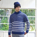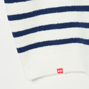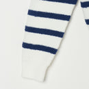 セーター ハーフジップニット ハイネックにもなる ボーダー柄 ロゴ刺繍 手洗い可 ふんわり モールニット TOPS