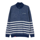 セーター ハーフジップニット ハイネックにもなる ボーダー柄 ロゴ刺繍 手洗い可 ふんわり モールニット ゴルフウェア