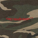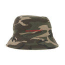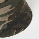 表面はポリエステルのコーデュロイを、裏面はウエアに合わせたカモフラ柄のダンボールニット素材を使用したユニセックスのバケットハット。