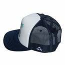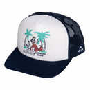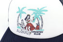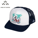 キャップ メッシュキャップ フラガール ヤシの木 アロハプリント 配色切替デザイン ロゴ刺繍 リゾートゴルフ柄
