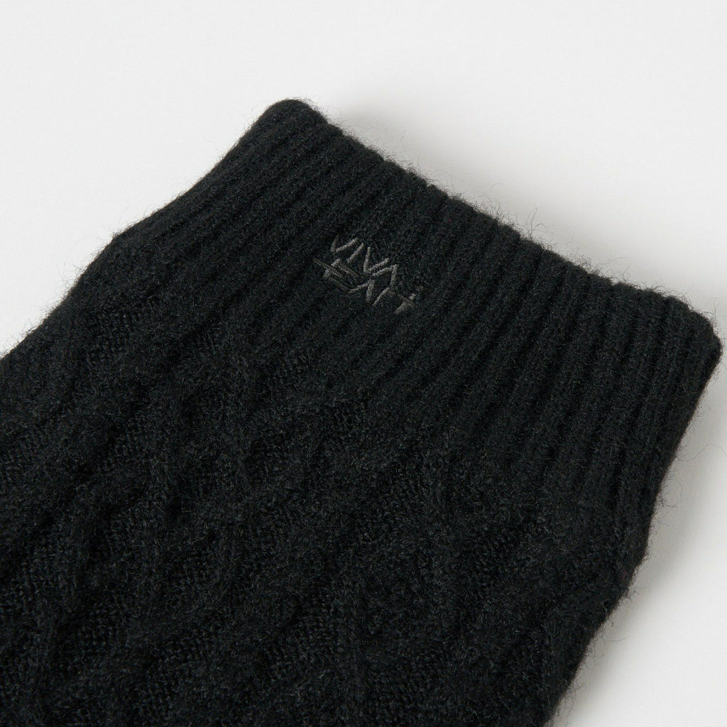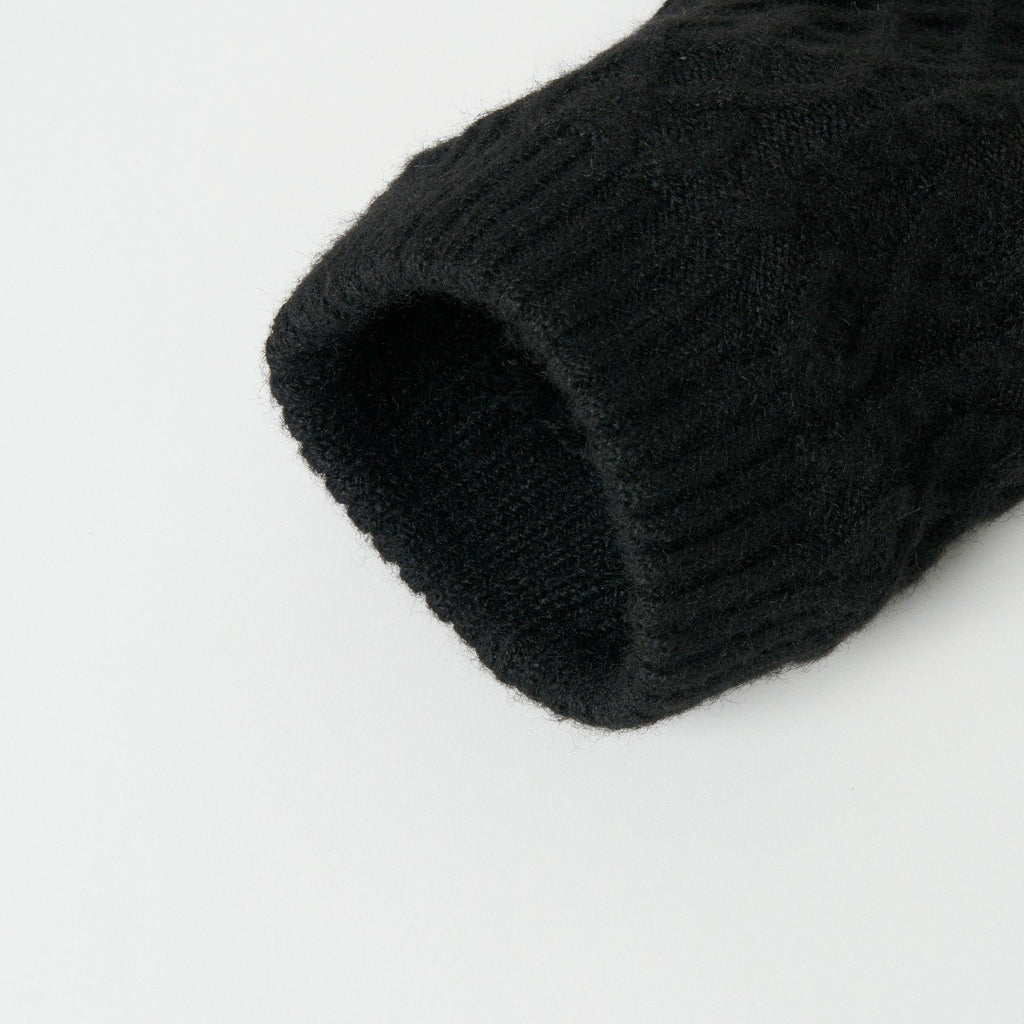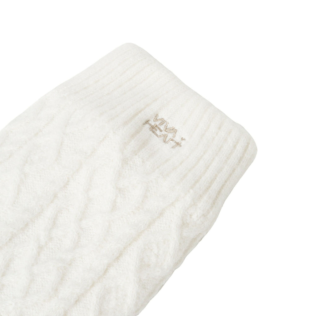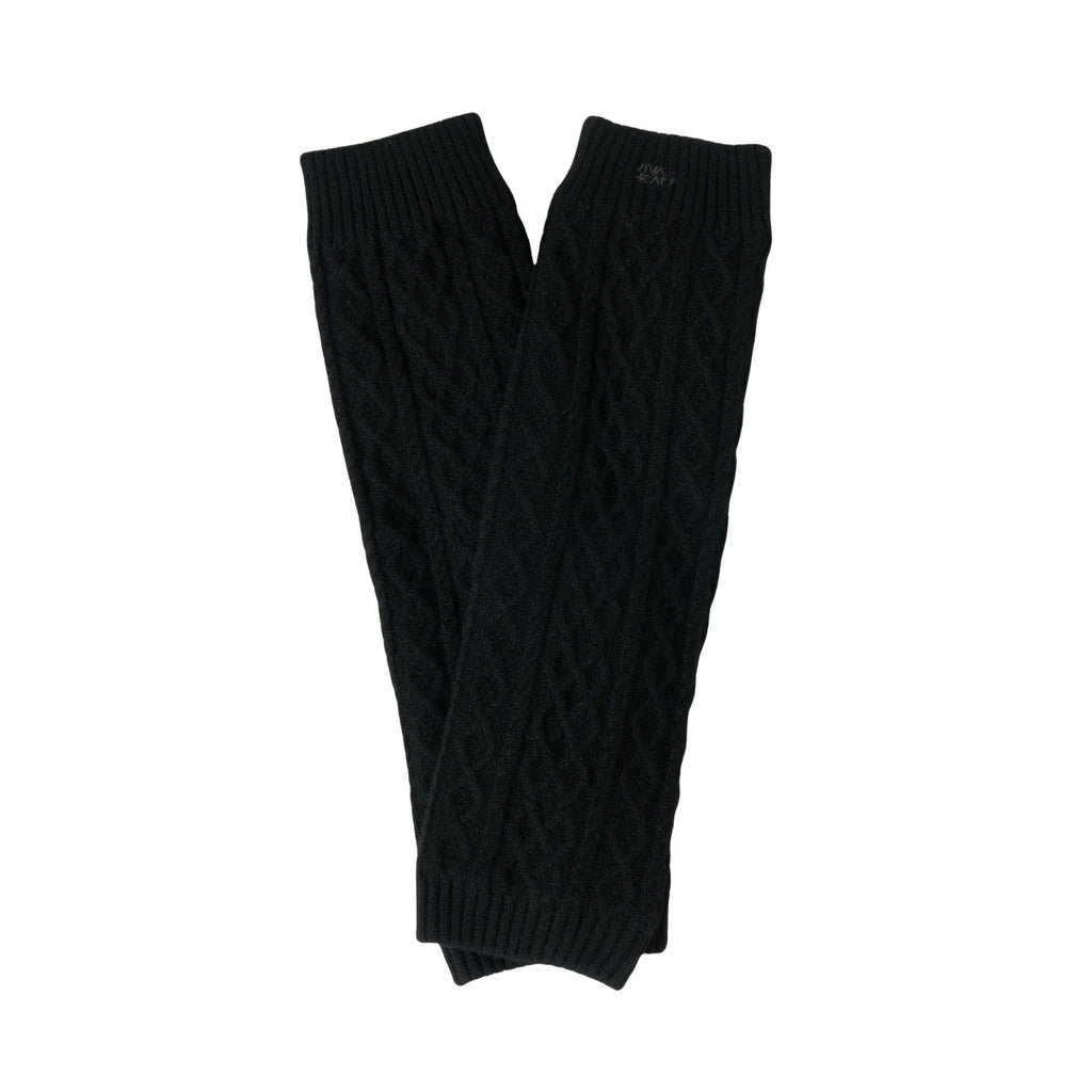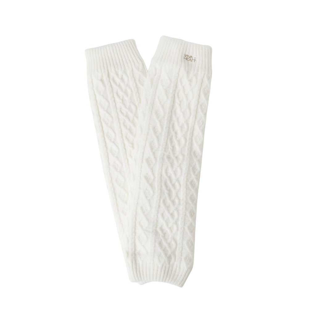 따뜻한 케이블 편직이 특징인 니트 레그 워머.