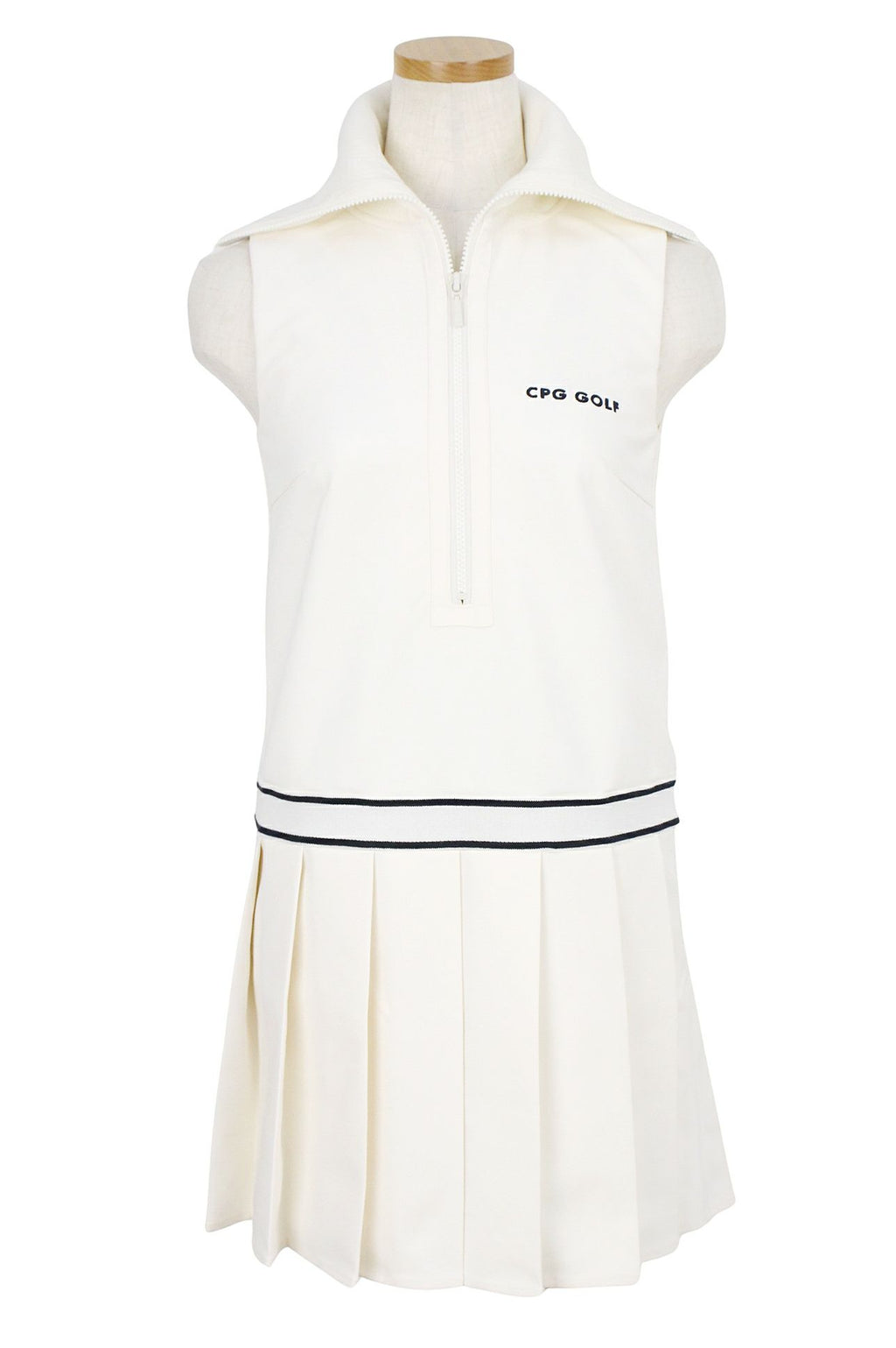 드레스, 민소매 점퍼 스커트, 베스트 드레스, 이너팬츠 포함, 골지 카라, 웨이스트 전환, 플리츠 디자인, 로고 자수, 골프웨어