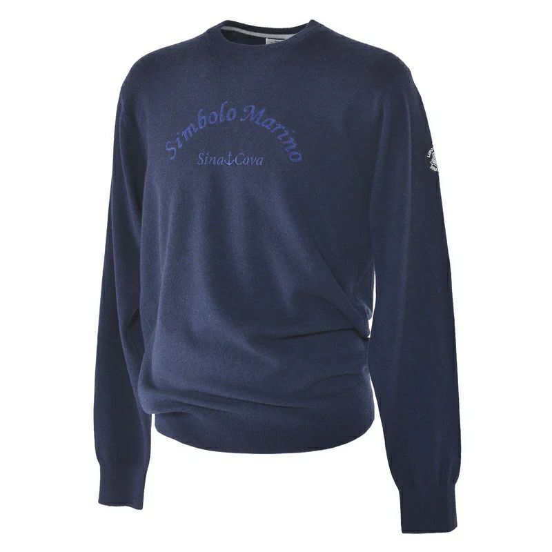이것은 "Simbolo Marino"와 "Sina Cova"자수라는 단어와 같은 색상의 원래 패치가있는 100% 캐시미어 승무원 목 스웨터입니다.