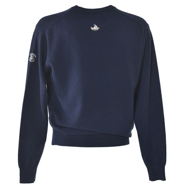 스웨터, 승무원 목 스웨터, 캐시미어 스웨터, 100% 캐시미어, 소프트 터치, 요트 모티프 패치, 아치 로고 자수