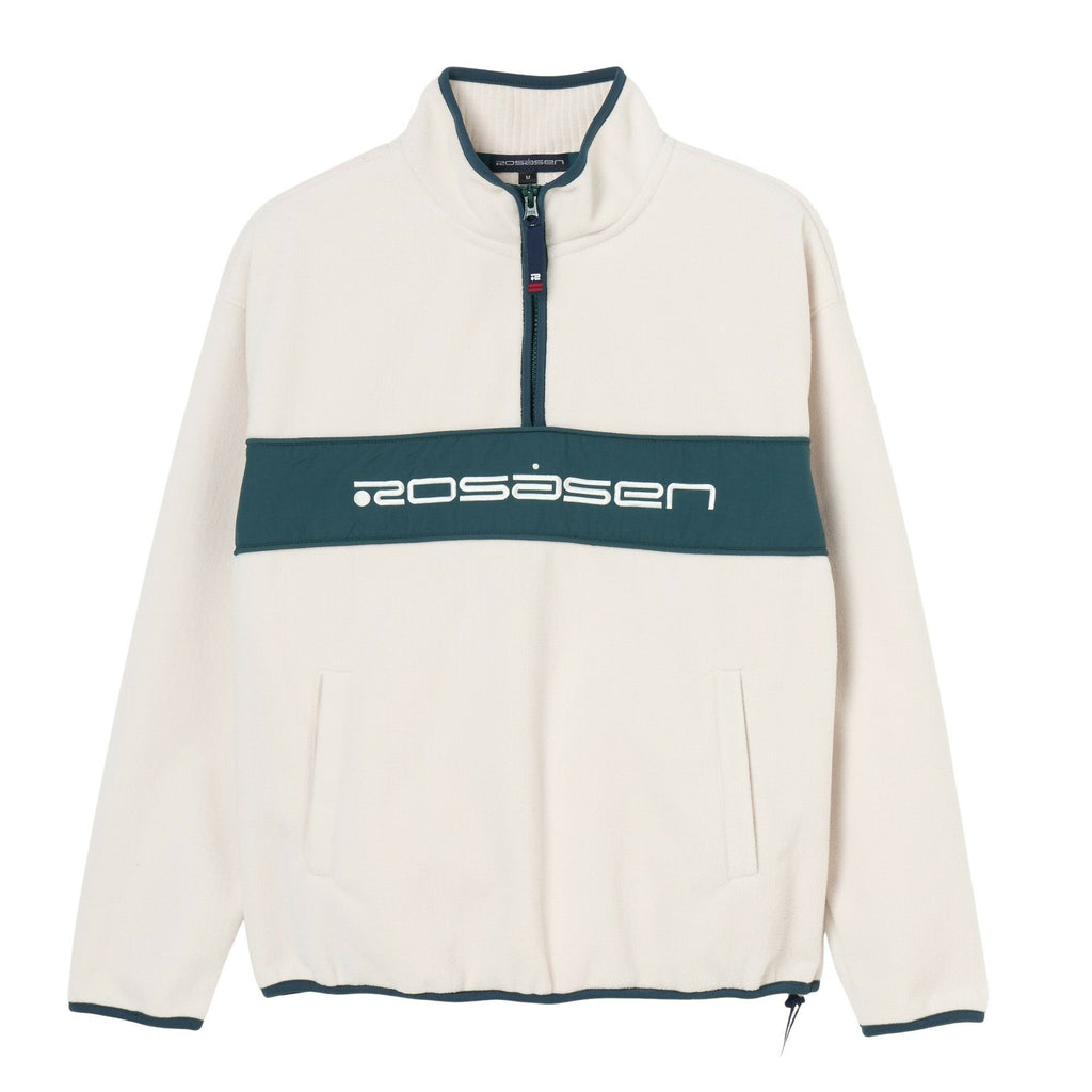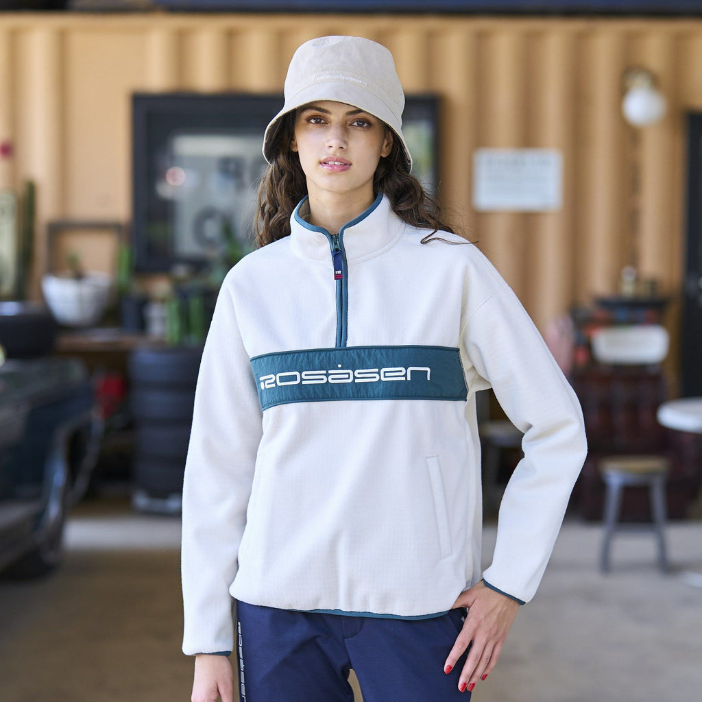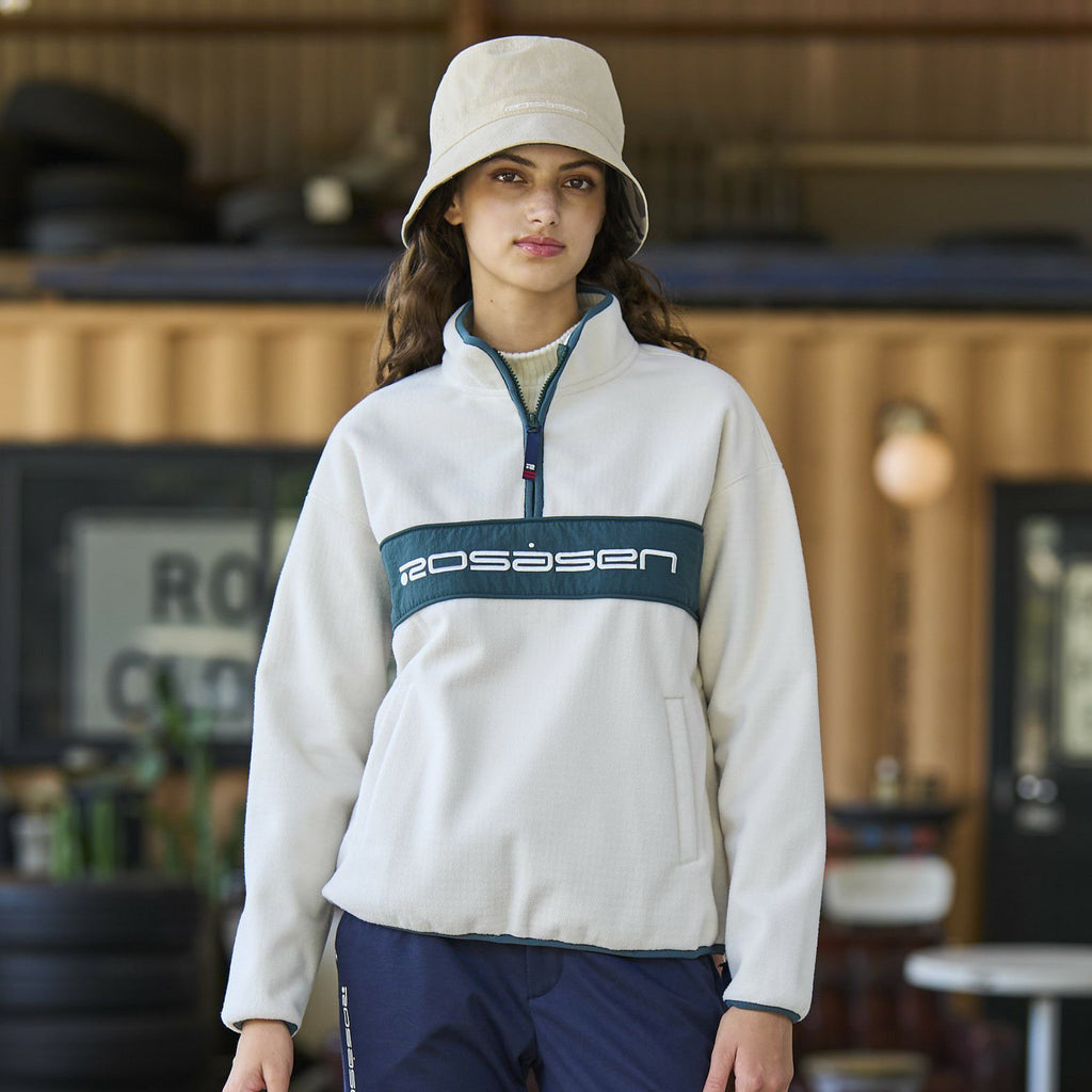 방풍, 보온, 발수 기능을 갖춘 3겹 폴리에스터 플리스 소재로 제작되었습니다. 뒷면은 체크무늬로 되어 있어 경량화를 도모합니다. 컬러 테이프와 앞부분의 변화가 있는 스탠드업 칼라와 하프지퍼 풀오버 타입입니다. 드롭 숄더와 여유로운 실루엣으로 로사센 특유의 캐쥬얼하면서도 활용도가 높은 아이템으로, 추운 날씨에도 유용하고 데일리로도 활용하기 좋은 아이템입니다.
