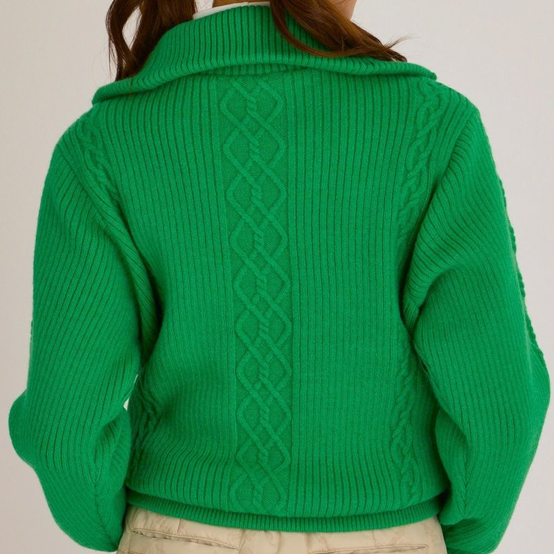 스웨터 하프지퍼 하이넥 터틀넥으로도 활용 가능한 케이블 니트 풀오버 로고 자수 골프웨어