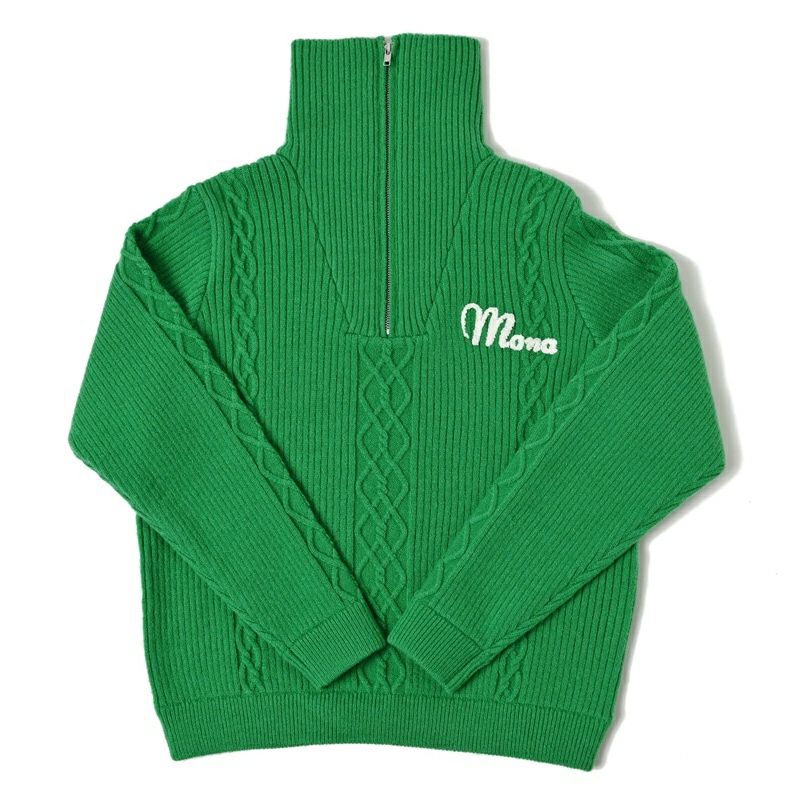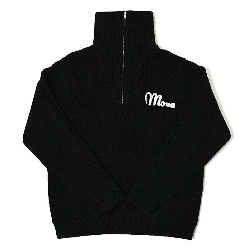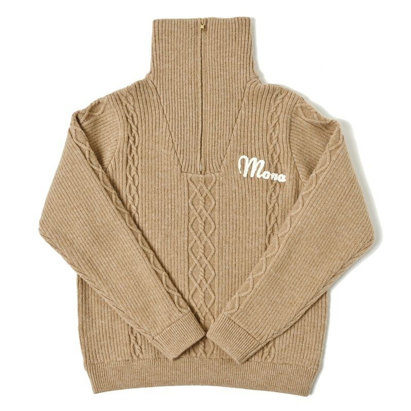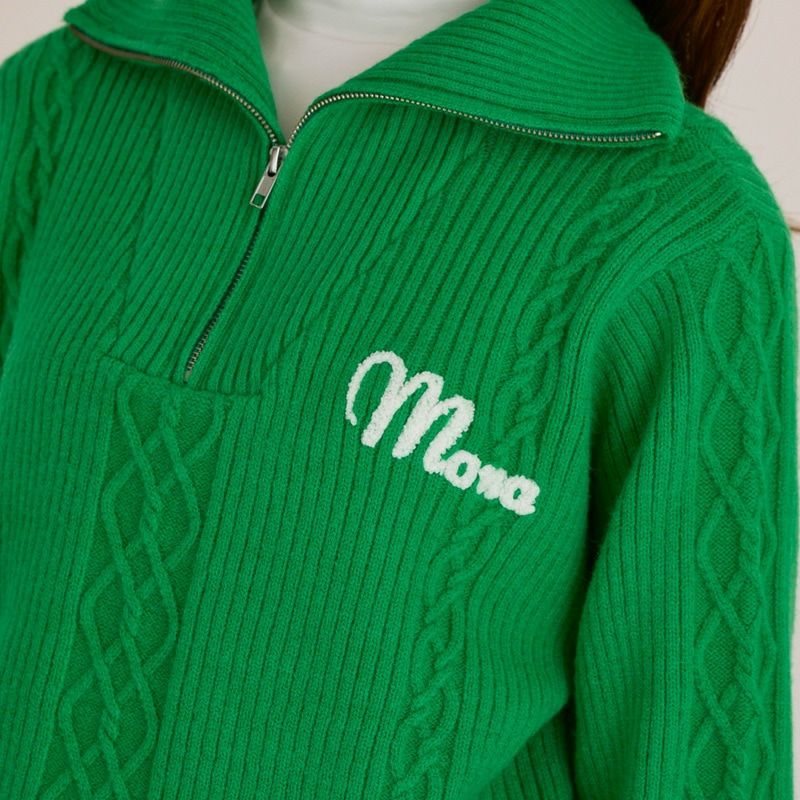 스웨터 하프지퍼 하이넥 터틀넥으로도 활용 가능 케이블 니트 풀오버 로고 자수