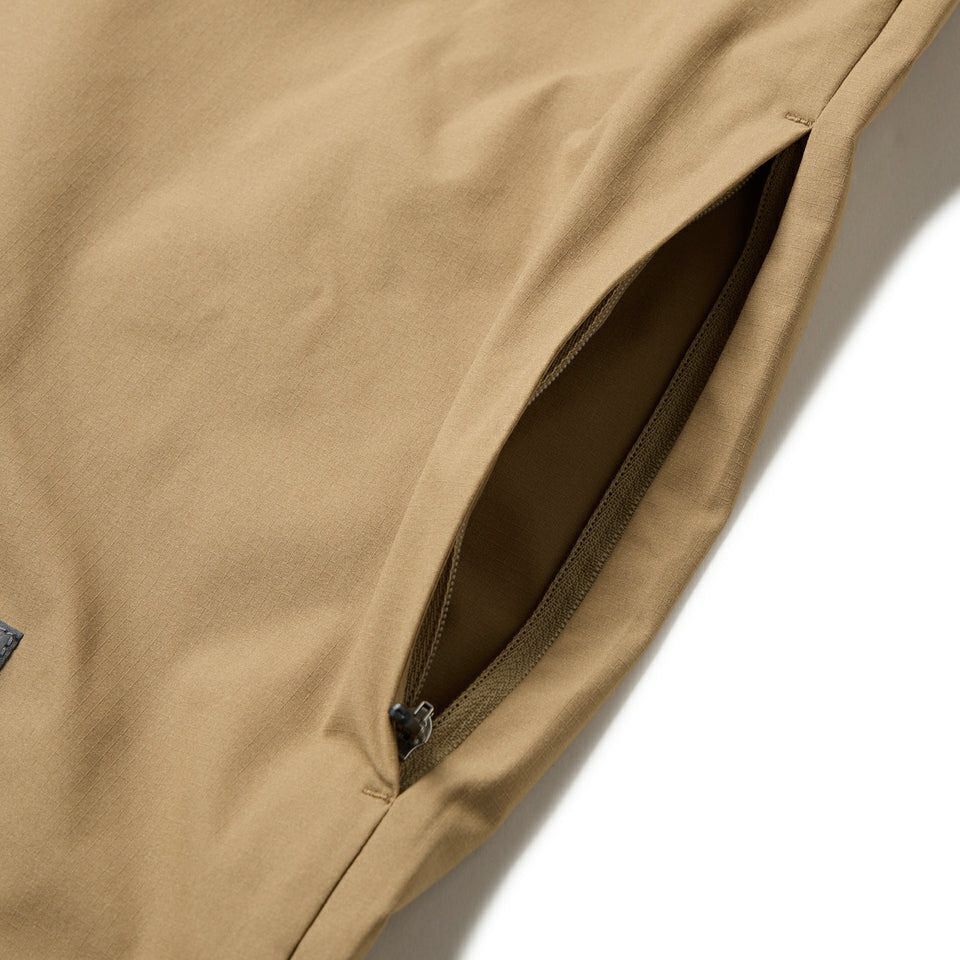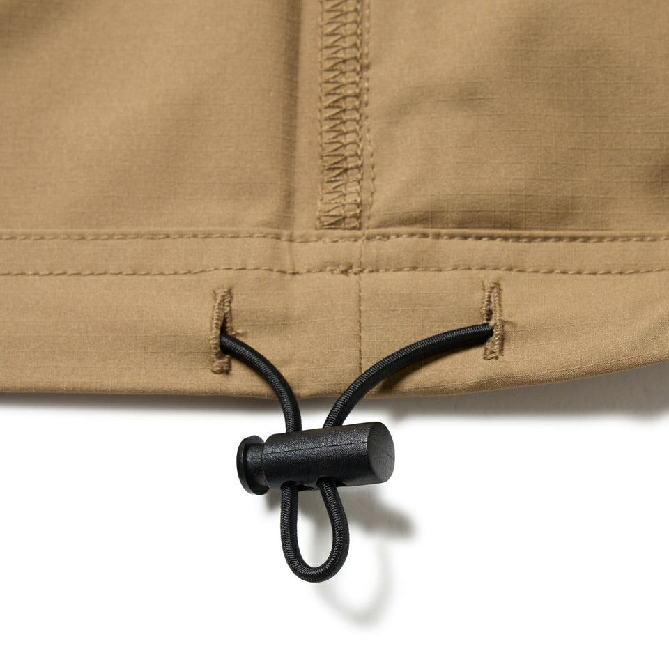 이 피스트는 신축성이 뛰어난 발수 립스톱 소재로 제작되어 어떤 상황에서도 쉽게 사용할 수 있습니다. 양쪽에 포켓이 있고 밑단에 조임끈이 있습니다. 넉넉한 사이즈가 특징입니다. 내염소성이 있어 서핑 후나 풀사이드에 적합합니다. 왼쪽 밑단에는 반사판 라벨이 배치되어 있습니다.