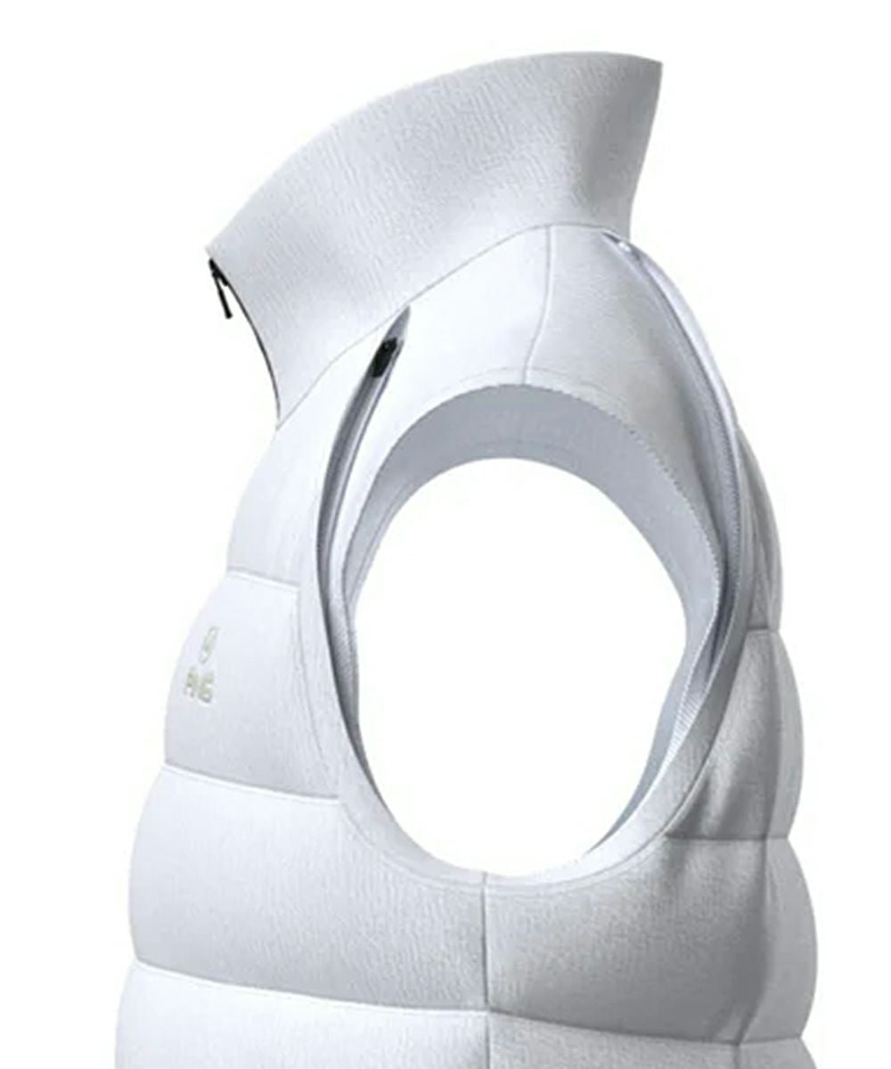 빗물을 튕겨내는 발수성 소재와 얇은 섬유를 쌓아 공기층을 만들어 뛰어난 보온성과 가벼움을 구현한 100% 재활용 페트병으로 만든 지속가능한 충전재 써모라이트 에코(Thermolite Eco)를 사용했다.