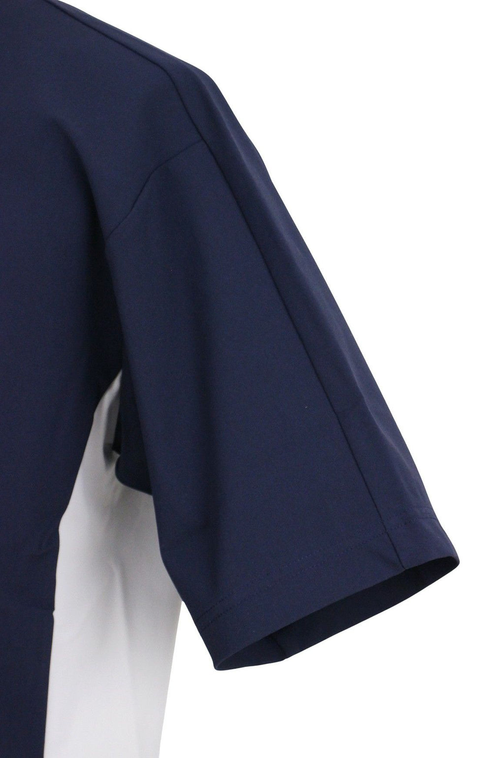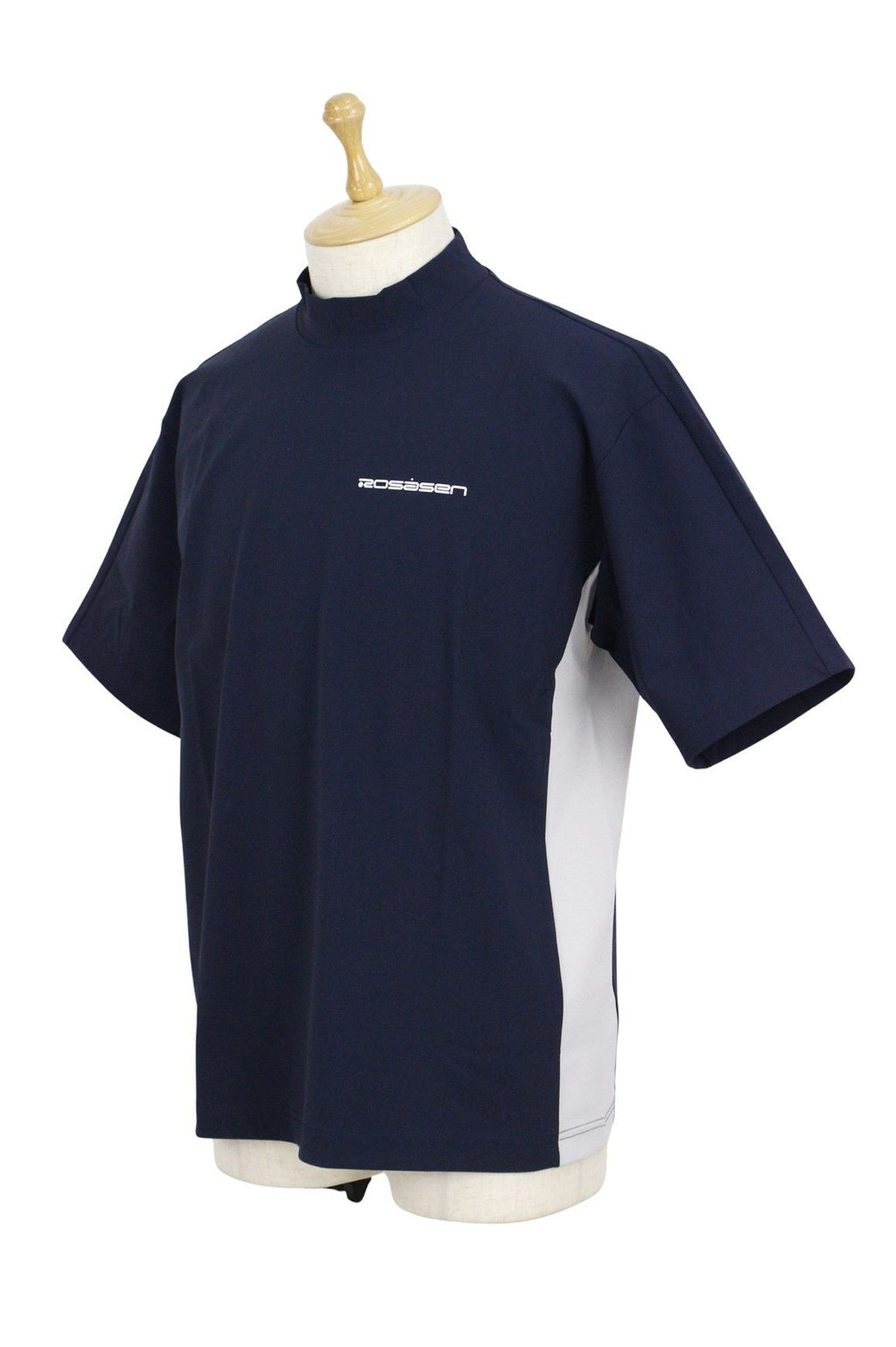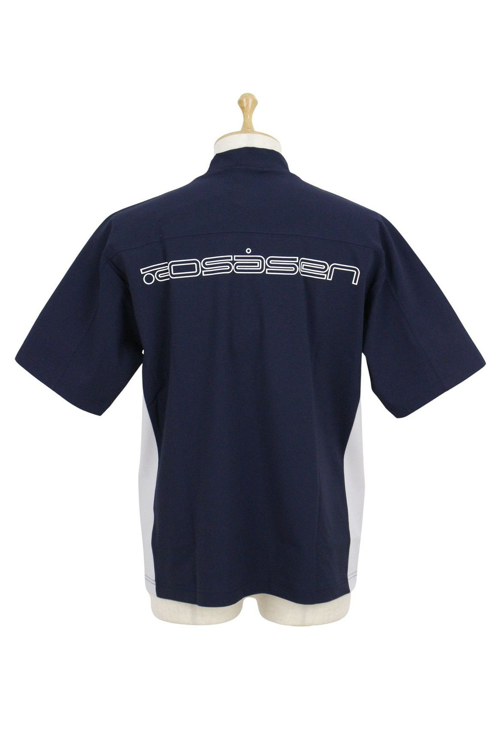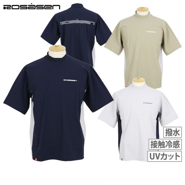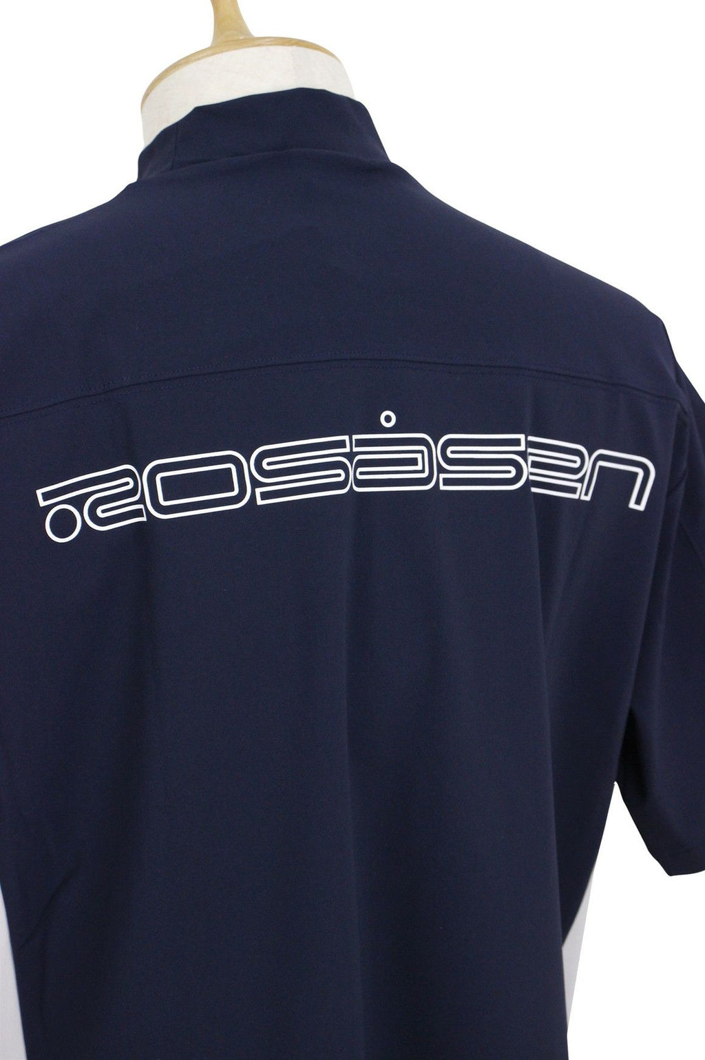하이넥 셔츠, 반소매, 신축성, 자외선차단, 발수, 촉감이 시원함, 루즈한 실루엣의 모크넥, 배색디자인, 아웃라인 로고 프린트, 골프웨어