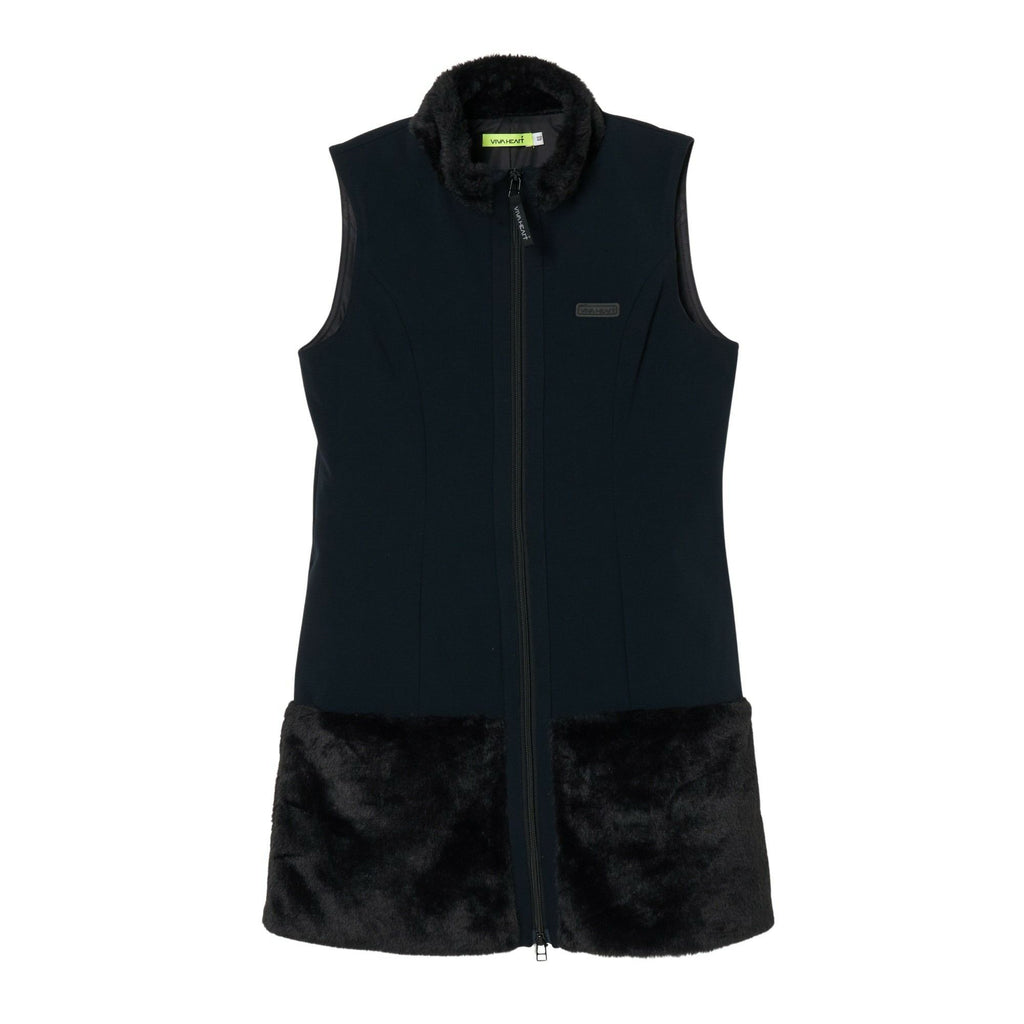 드레스 커버 드레스 롱 베스트로도 활용 가능 인조 퍼 도킹 디자인 질레 풀 지퍼 드레스 그로그랭 저지 소재 안감 로고 패치 골프웨어