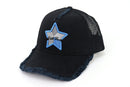 캡 메쉬 캡 손상 가공 스타 자수 Rame Bluestar 자수 검은 유니esex 디자인 결합 사용