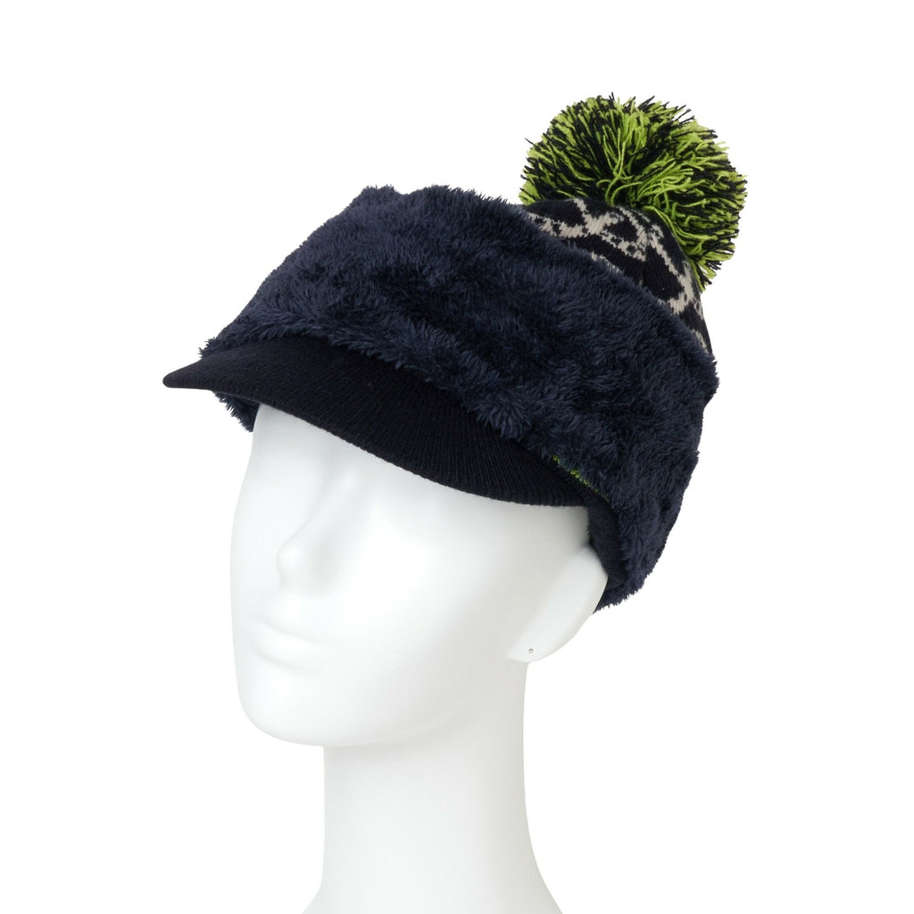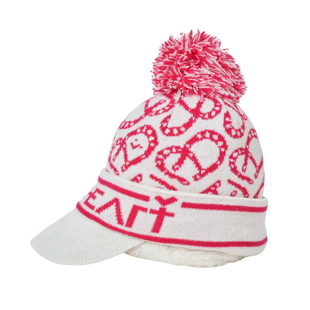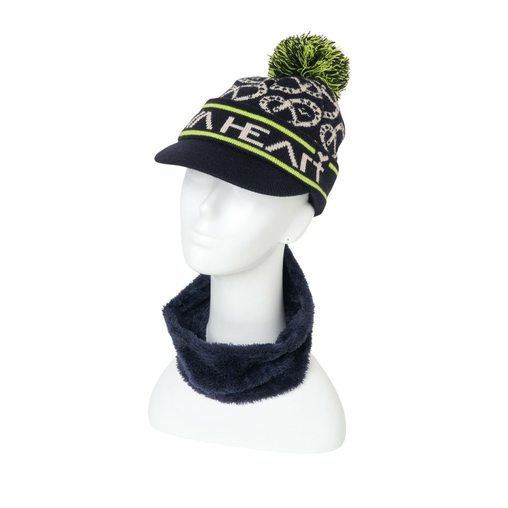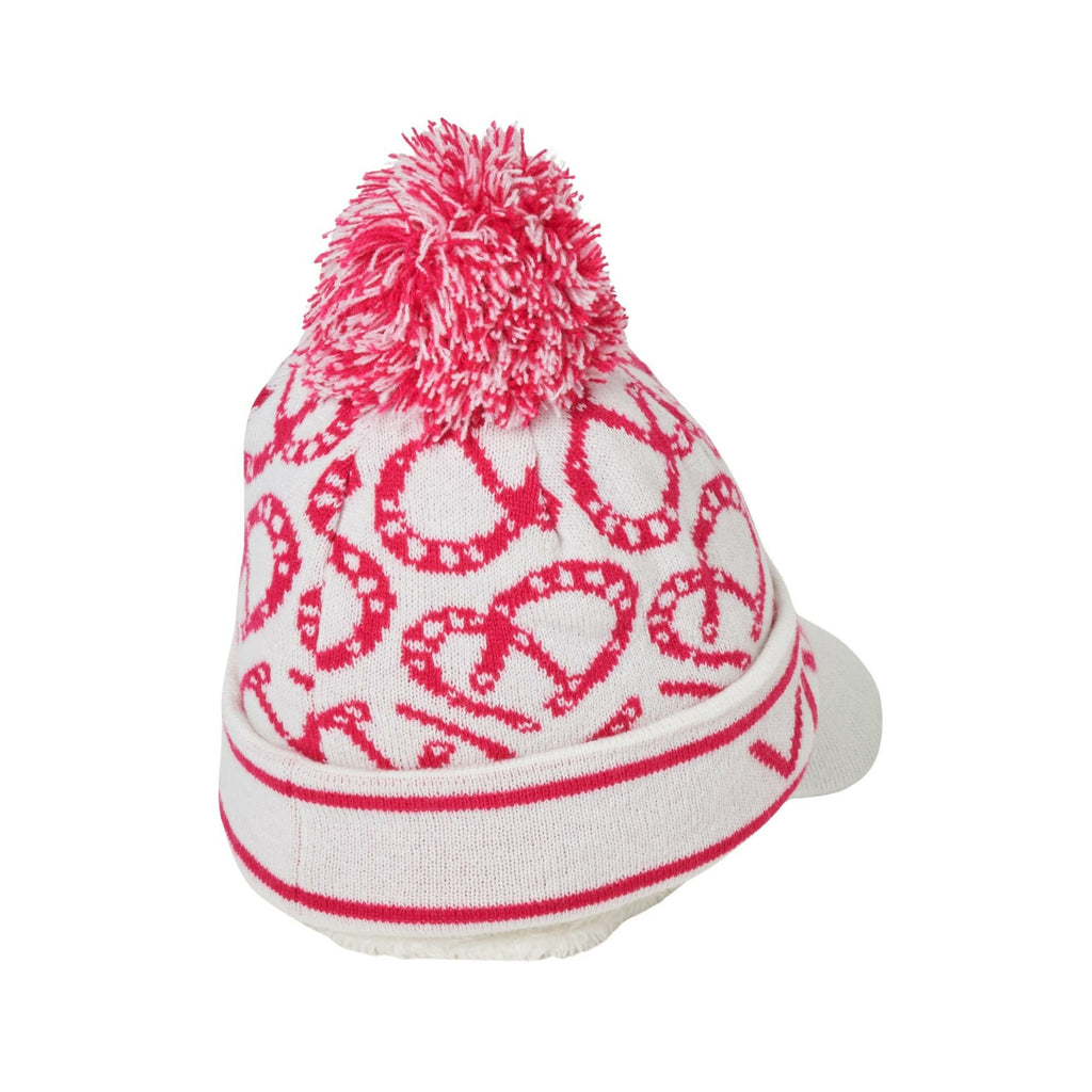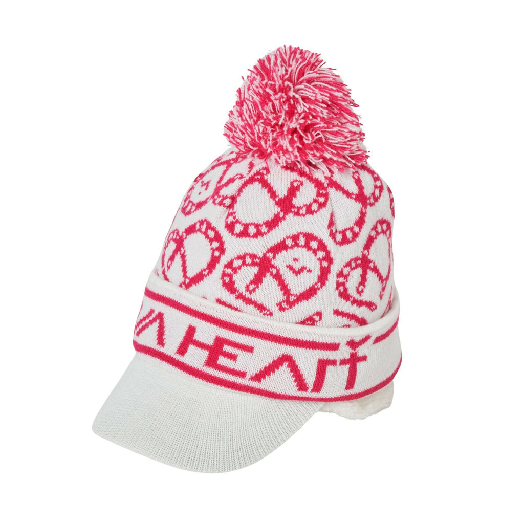 캡, 니트캡, 챙 달린 니트캡, 넥워머 포함, 2WAY, 보아백, 보온성, 쉐발 하트 올오버 패턴, 폼폼 포함, 골프