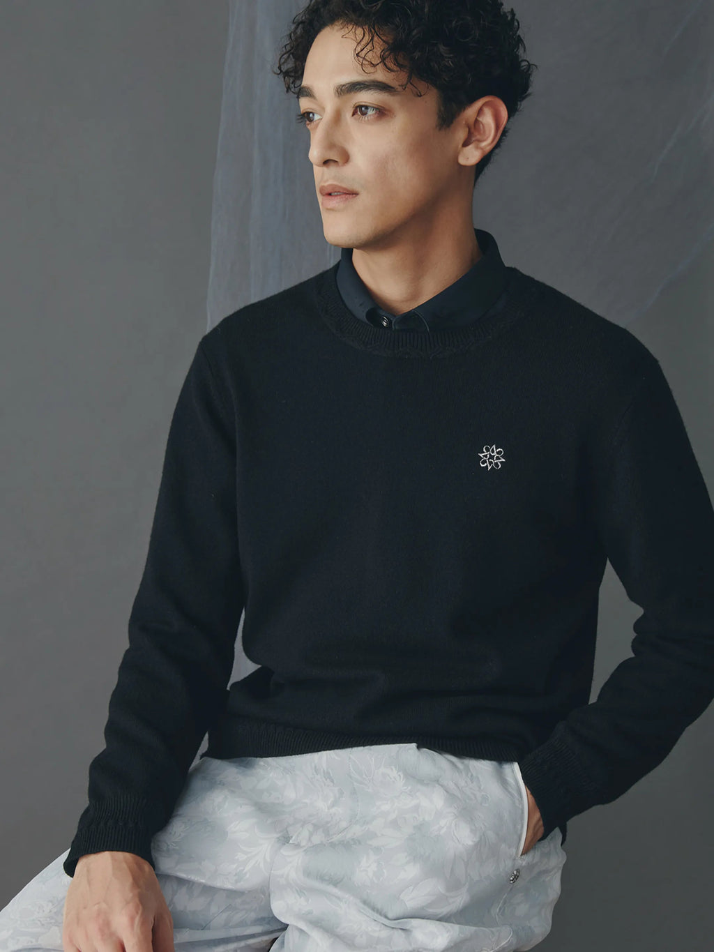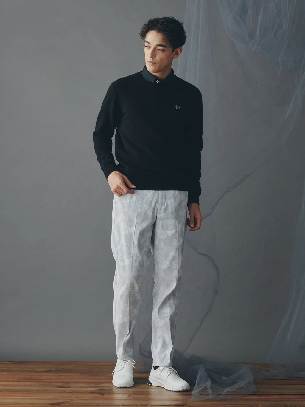 링크 안감이 있는 12G 저지 x 크루넥 니트 풀오버