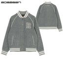 블루종 스타디움 점퍼 디자인 트위드풍 골판지 소재 파이핑 디자인 로고 패치 리브라인 디자인