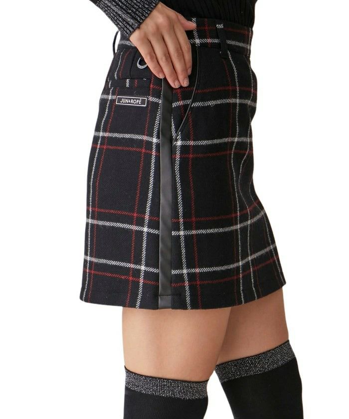스커트 울 혼방 소재 체크 패턴 사이드라인 디자인 살짝 기모된 이너팬츠 포함 울 혼방 체크 패턴 사이드라인 스커트 BOTTOMS