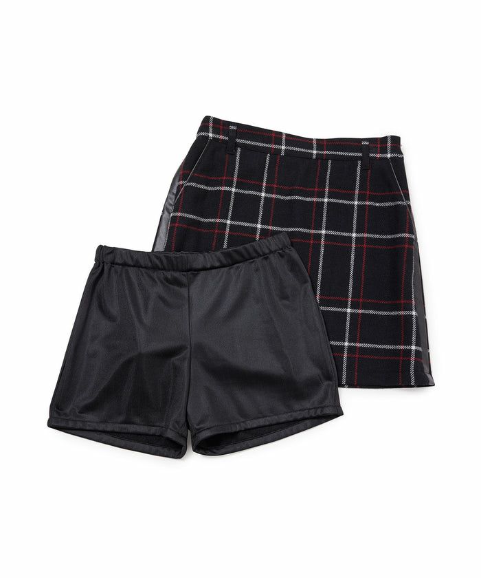 클래식한 체크 패턴과 합성가죽 라인이 경쾌한 느낌을 주는 스커트입니다.