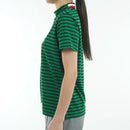 하이 넥 셔츠, 짧은 소매, 모의 목 셔츠, UV 보호, 빠른 건조, 칼라 뒷면의 트리콜러 디자인, 평범한, 테두리 패턴, 로고 패치