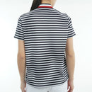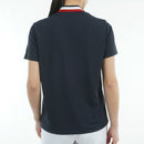 하이 넥 셔츠, 짧은 소매, 모의 목 셔츠, UV 보호, 빠른 건조, 칼라 뒷면의 트리콜러 디자인, 평범한, 테두리 패턴, 로고 패치, 골프 마모