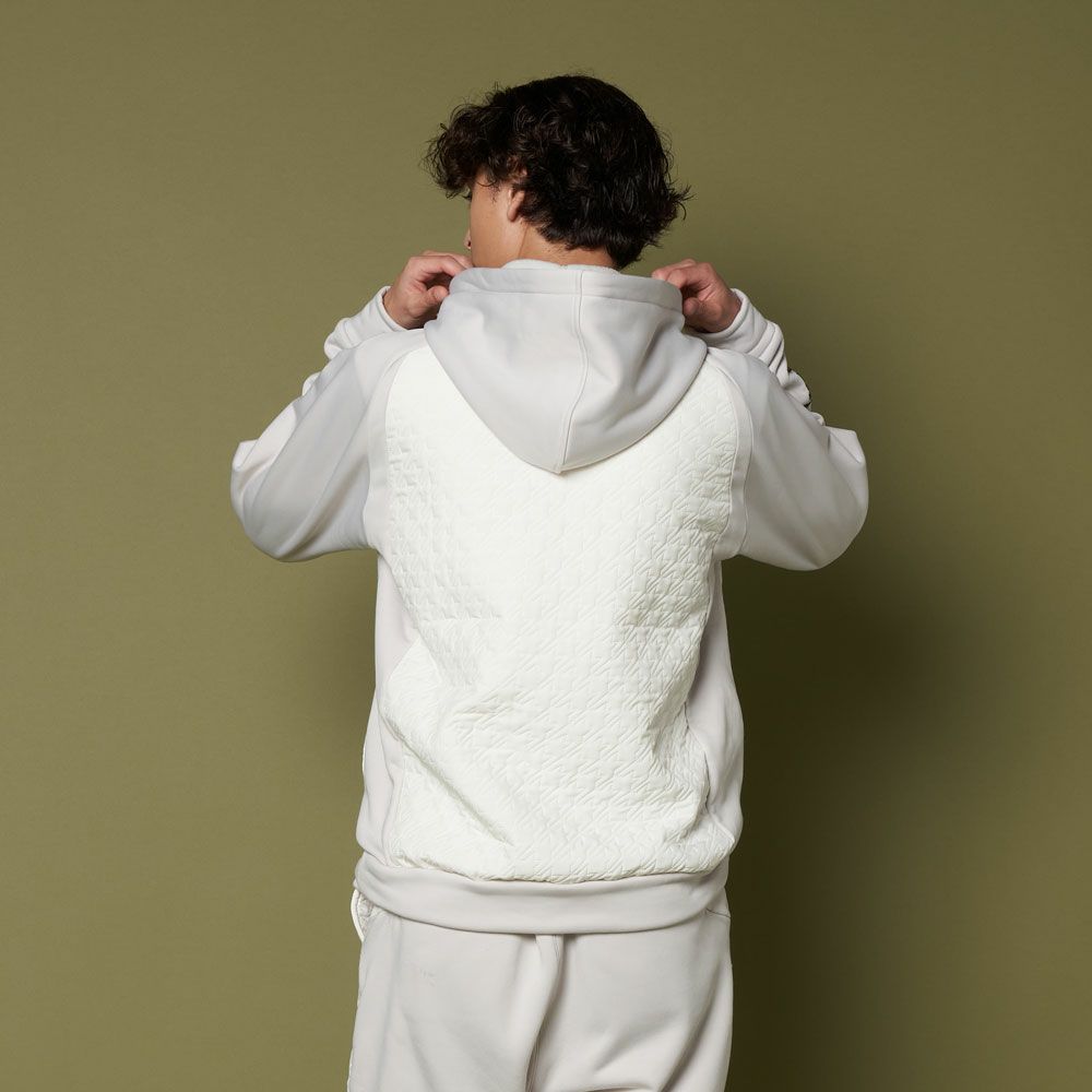 パーカー フード付きトレーナー 保温 防寒 異素材コンビ 中綿入りタフタ×裏フリース素材 千鳥格子柄 ピンソニック加工 オーロラロゴプリント M~3Lまでご用意 ゴルフウェア