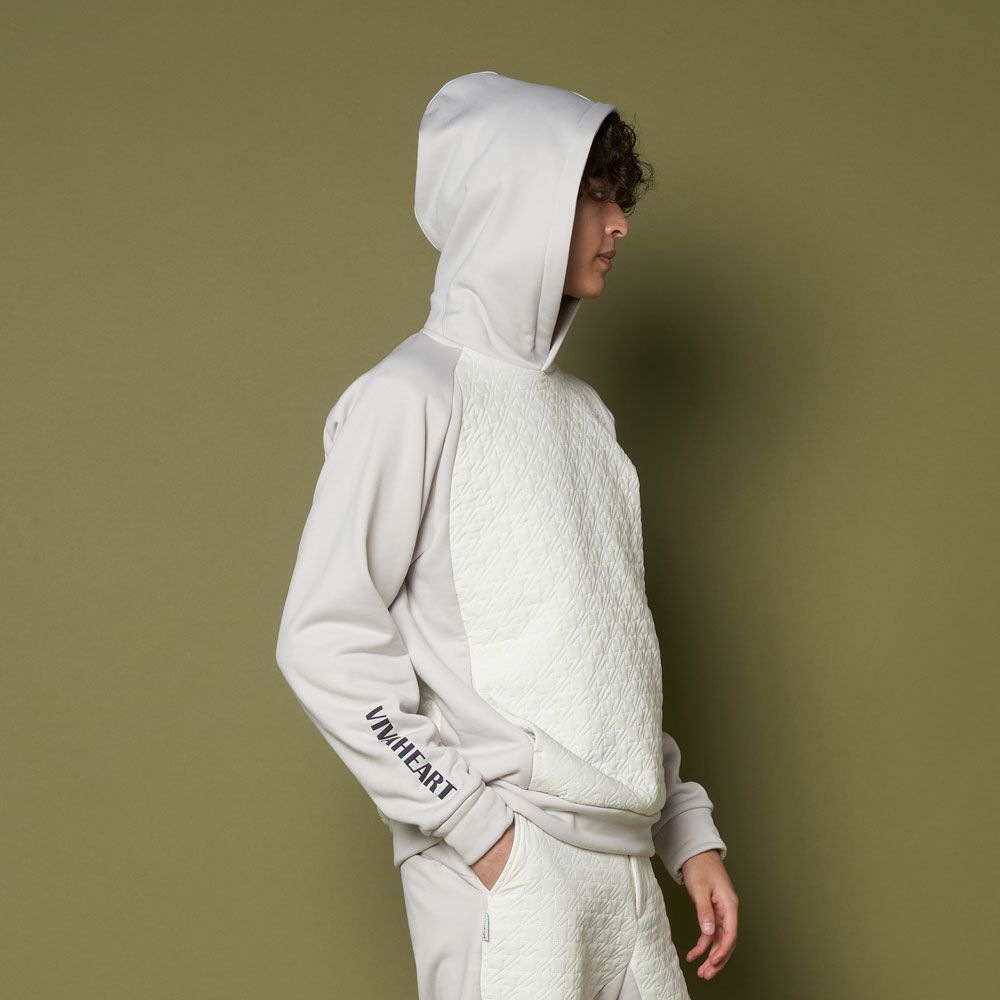 パーカー フード付きトレーナー 保温 防寒 異素材コンビ 中綿入りタフタ×裏フリース素材 千鳥格子柄 ピンソニック加工 オーロラロゴプリント M~3Lまでご用意