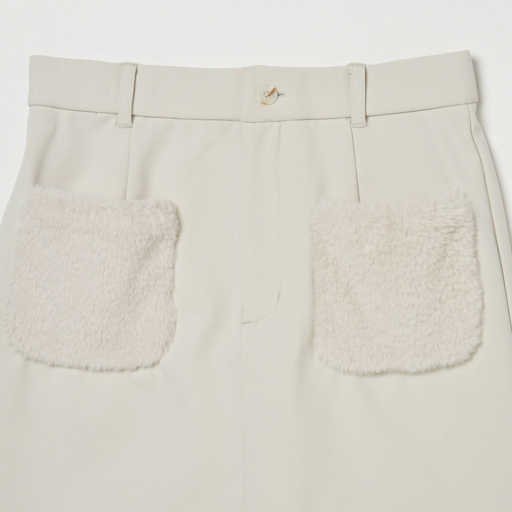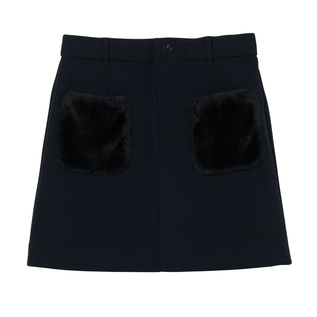 スカート 台形スカート フェイクファーポケットデザイン ストレッチ グログランジャージ素材 裏地付き ロゴ刺繍