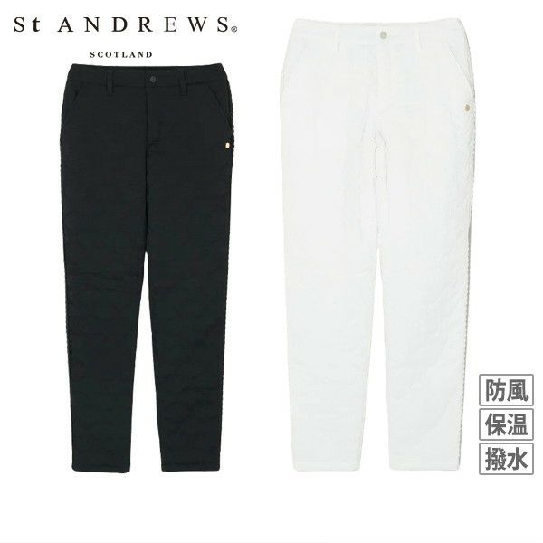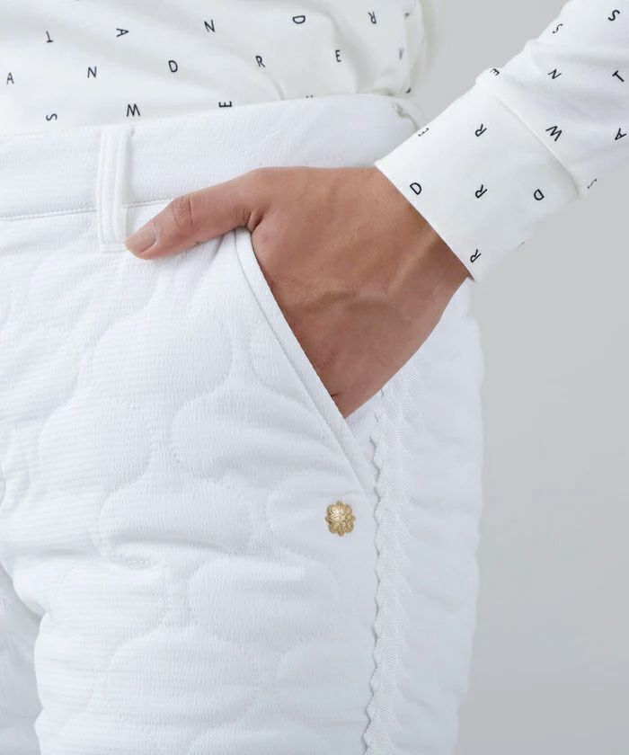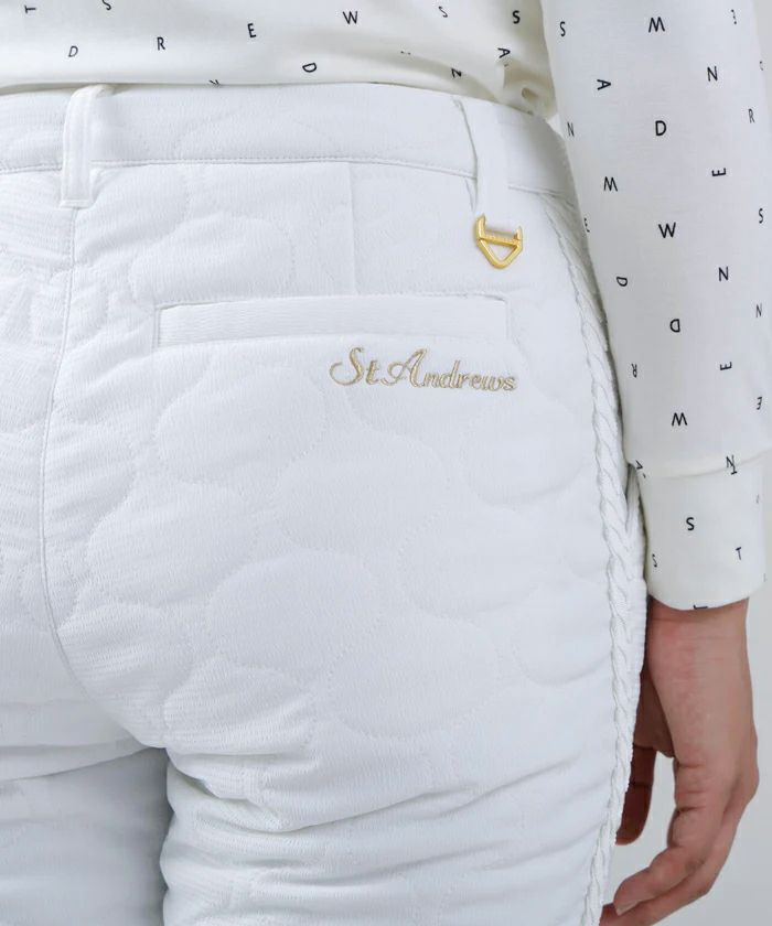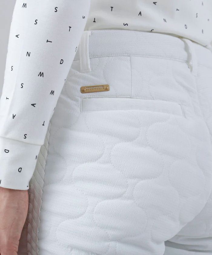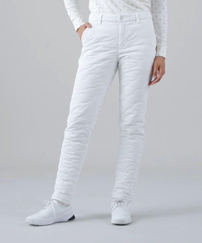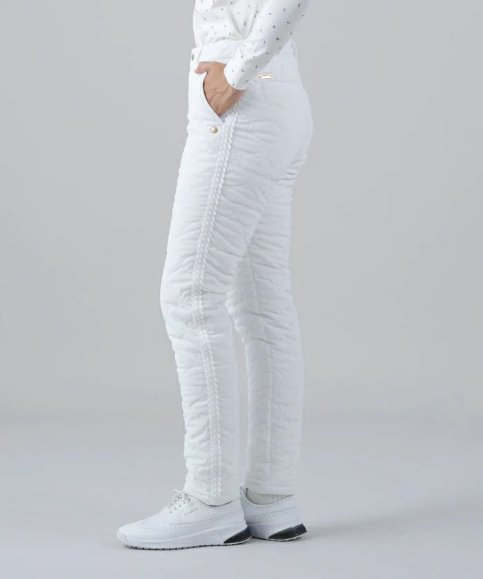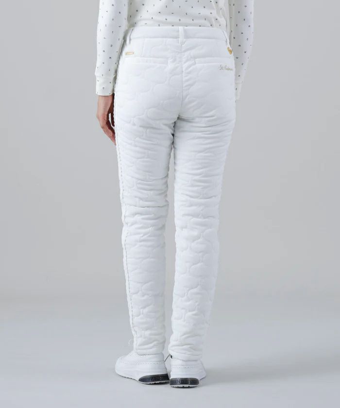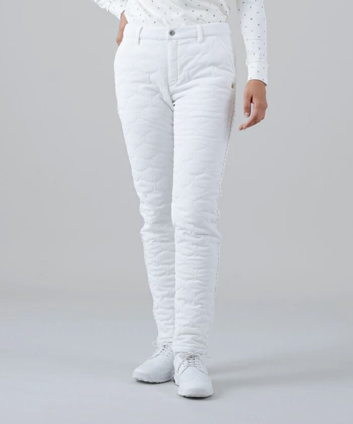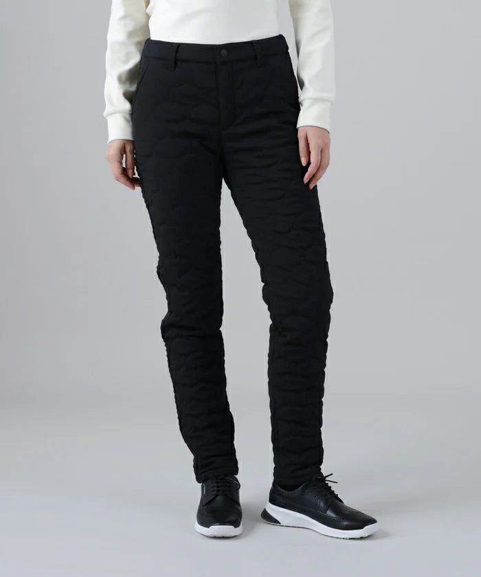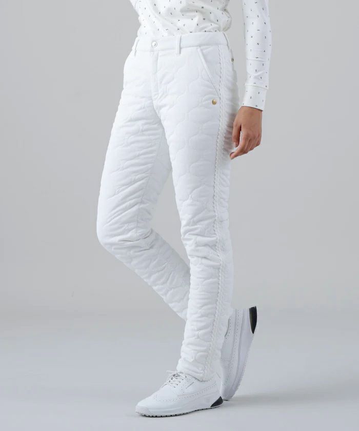 パンツ ロングパンツ 中綿パンツ 撥水 防風 ストレッチ ひょうたん柄キルト サイドグログランテープデザイン シボ感 ボーダー柄 ゴルフウェア