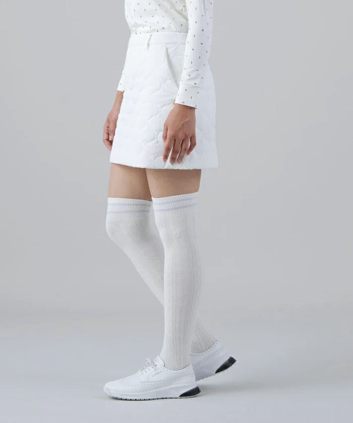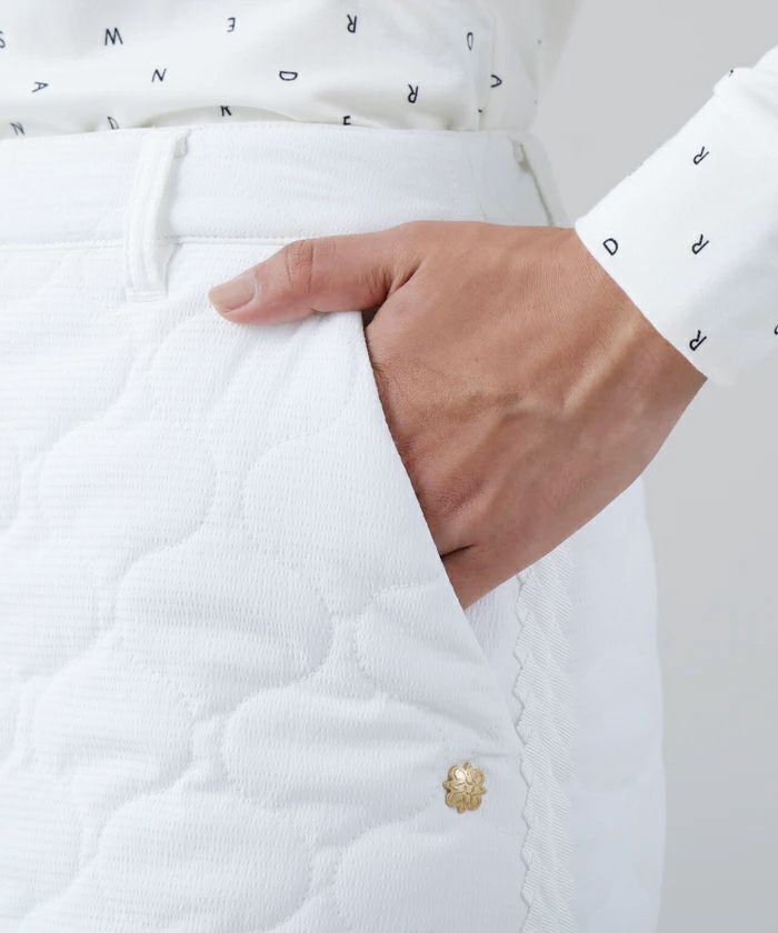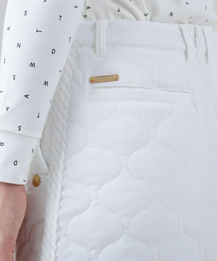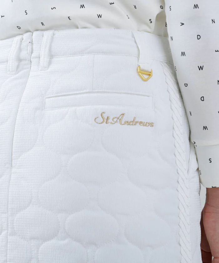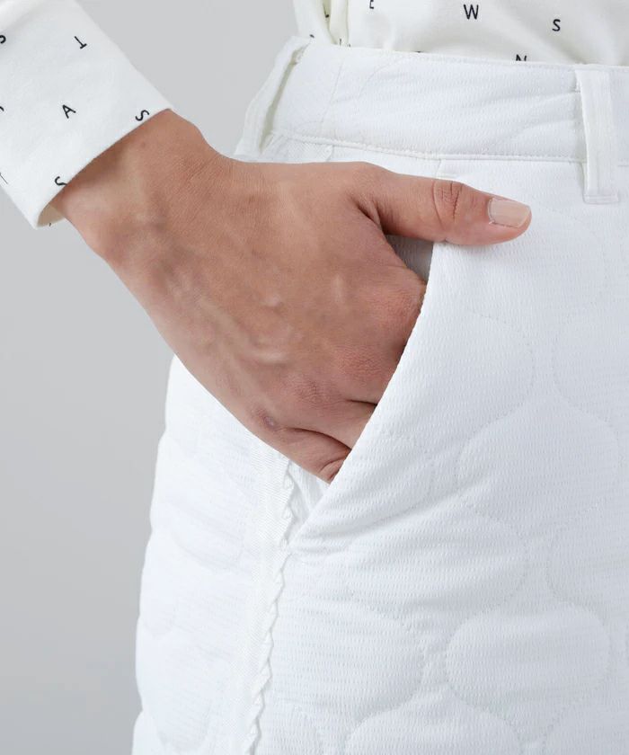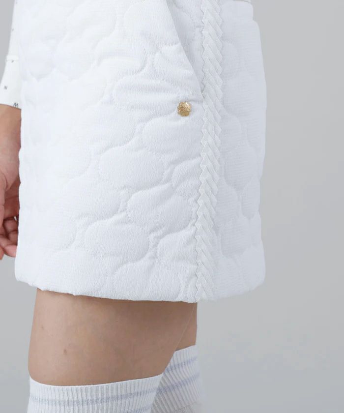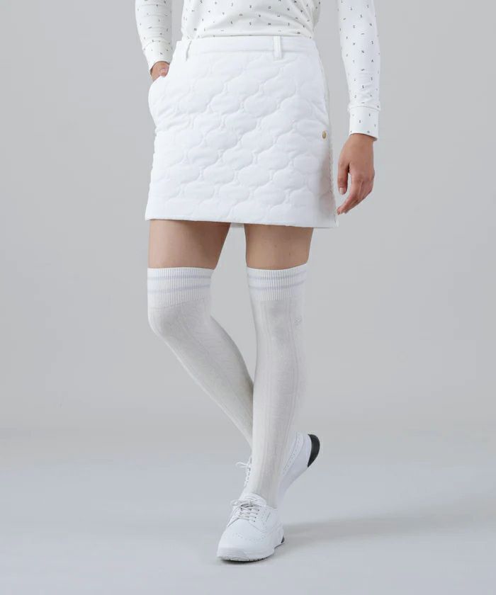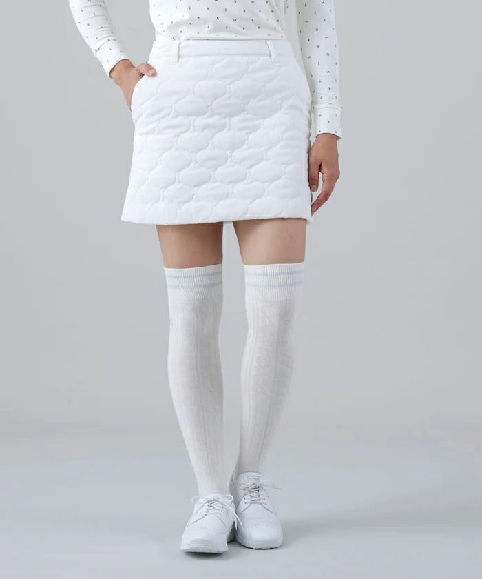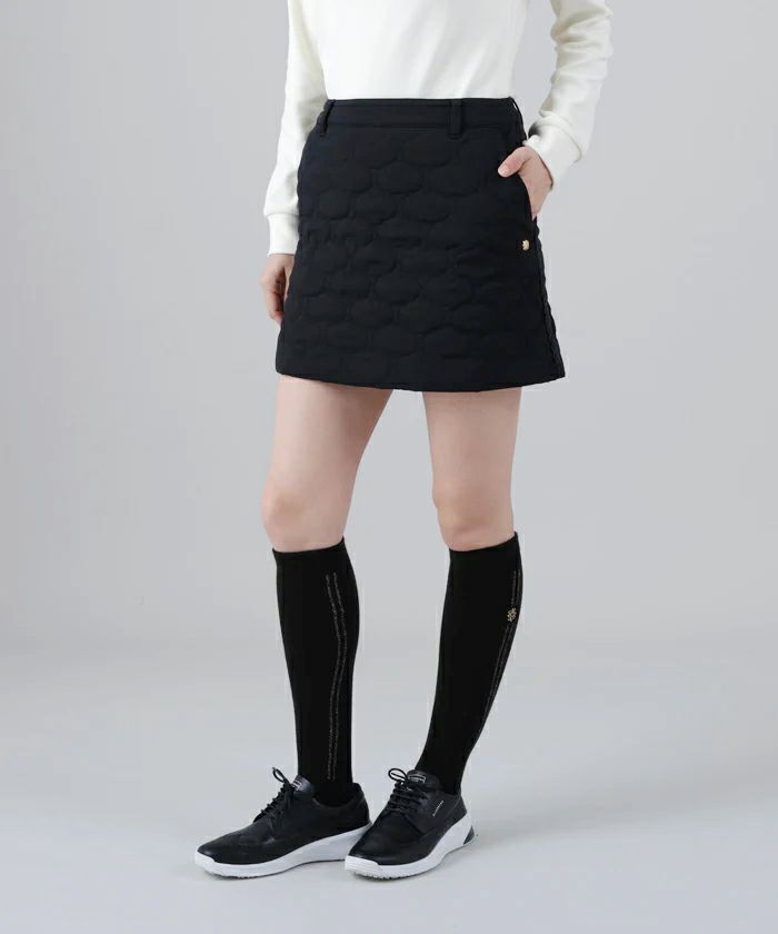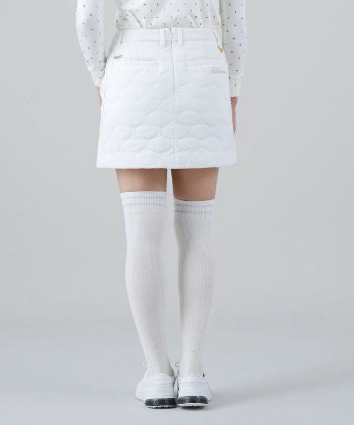 スカート 中綿スカート 撥水 防風 ストレッチ ひょうたん柄キルト サイドグログランテープデザイン シボ感 ボーダー柄 ゴルフウェア
