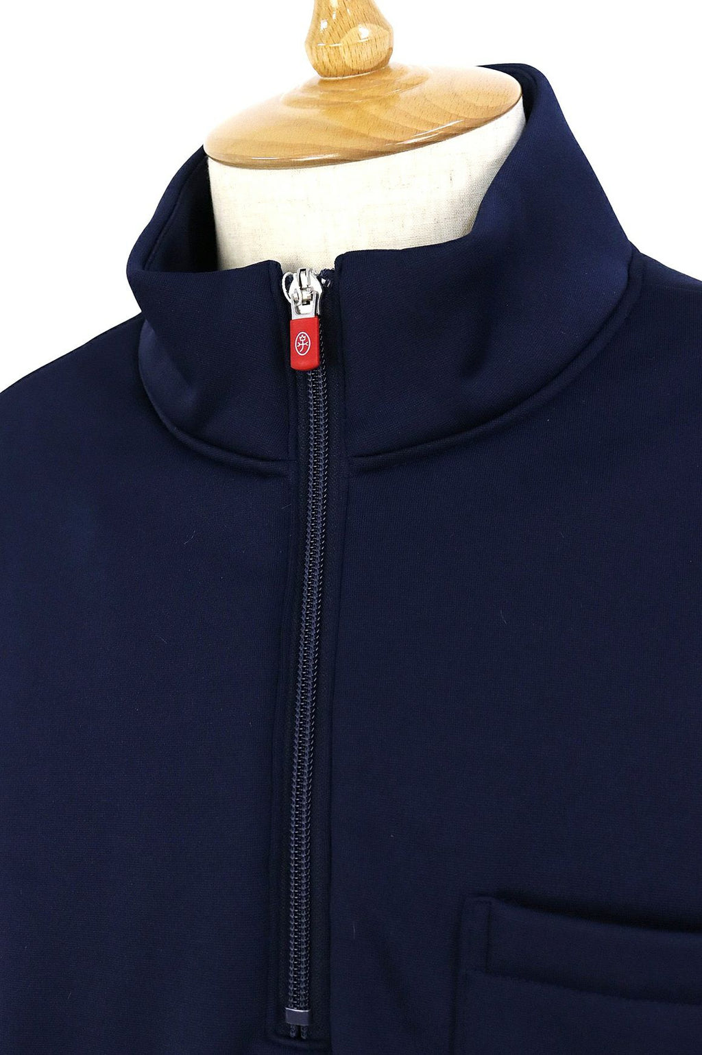 一部ストレッチ 伸縮性 保温 防寒 遠赤外線放射 一部裏起毛 ハーフジップアップ 暖かい素材 ホットレイ